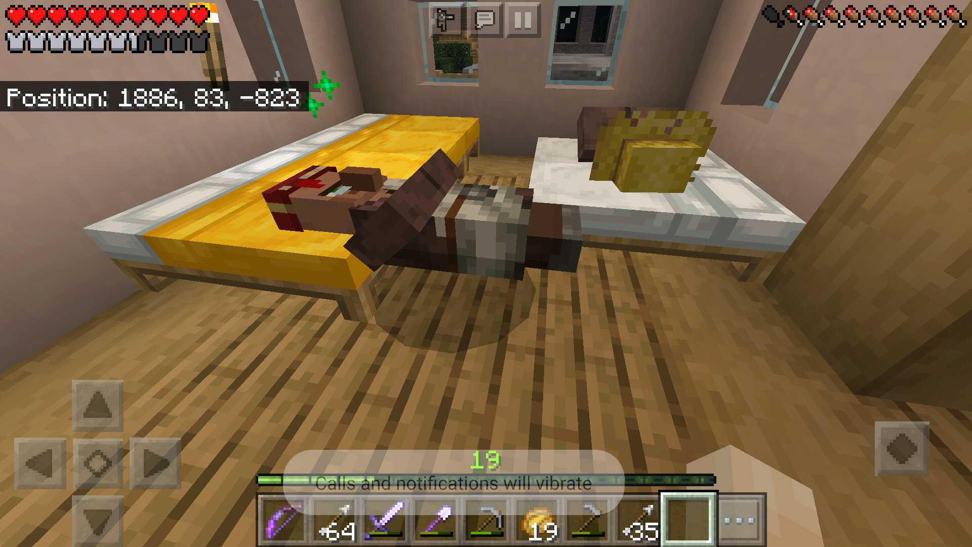 Hello there, so, I have found this bug that happens whenever villagers go to sleep in Minecraft. What happens is that the villagers float out of their beds randomly and just drift around the world in their sleeping state. To get them back to normality, I as a player have to sleep on their beds so that the villagers teleport back to their beds. If the bell is rung while the villagers are stuck in this floating state, The villager will get stuck in the spot they are and there is no way to bring them back to normal, unless you quit the world. Hope you fix this annoying bug, thank you.