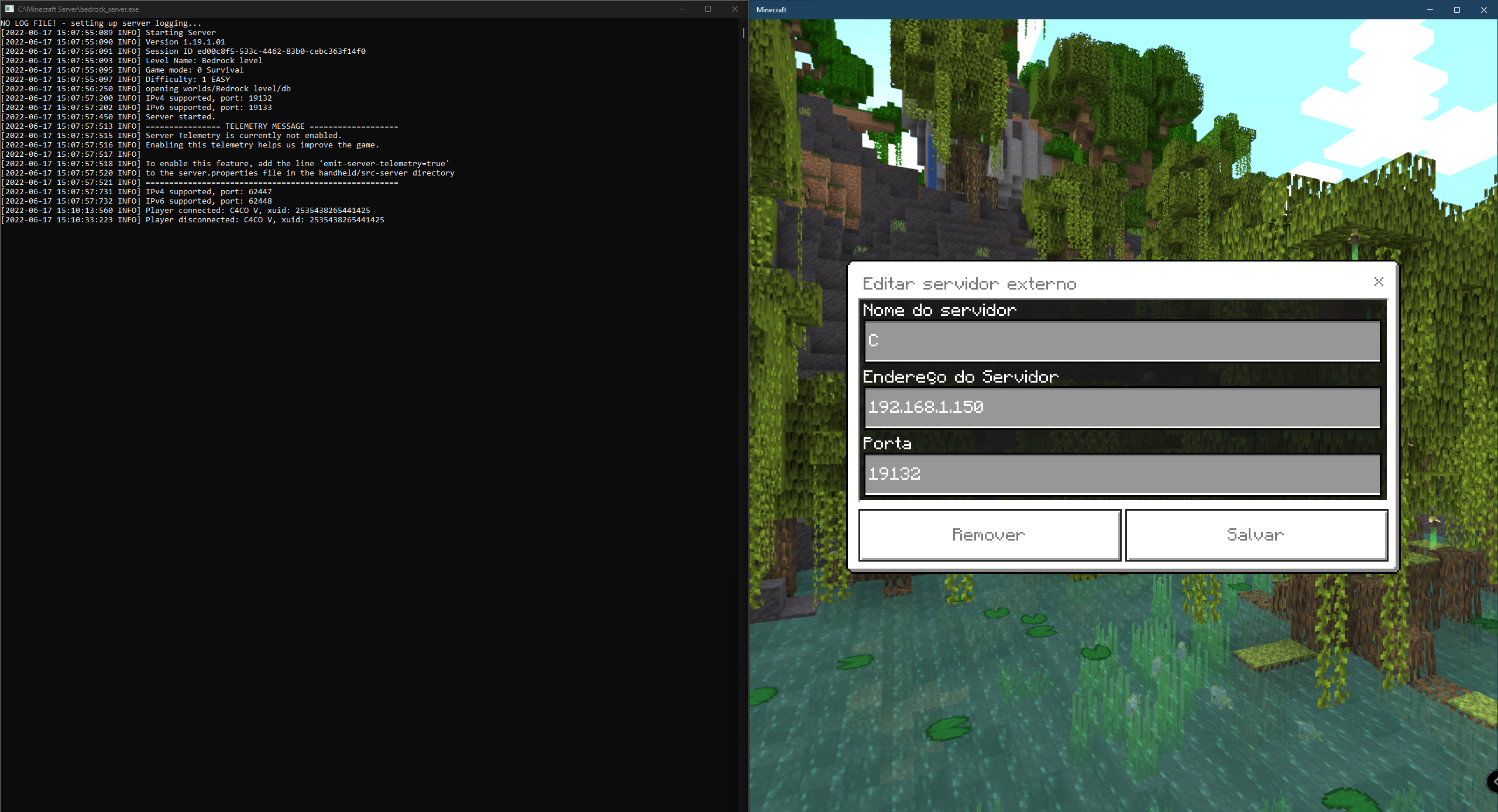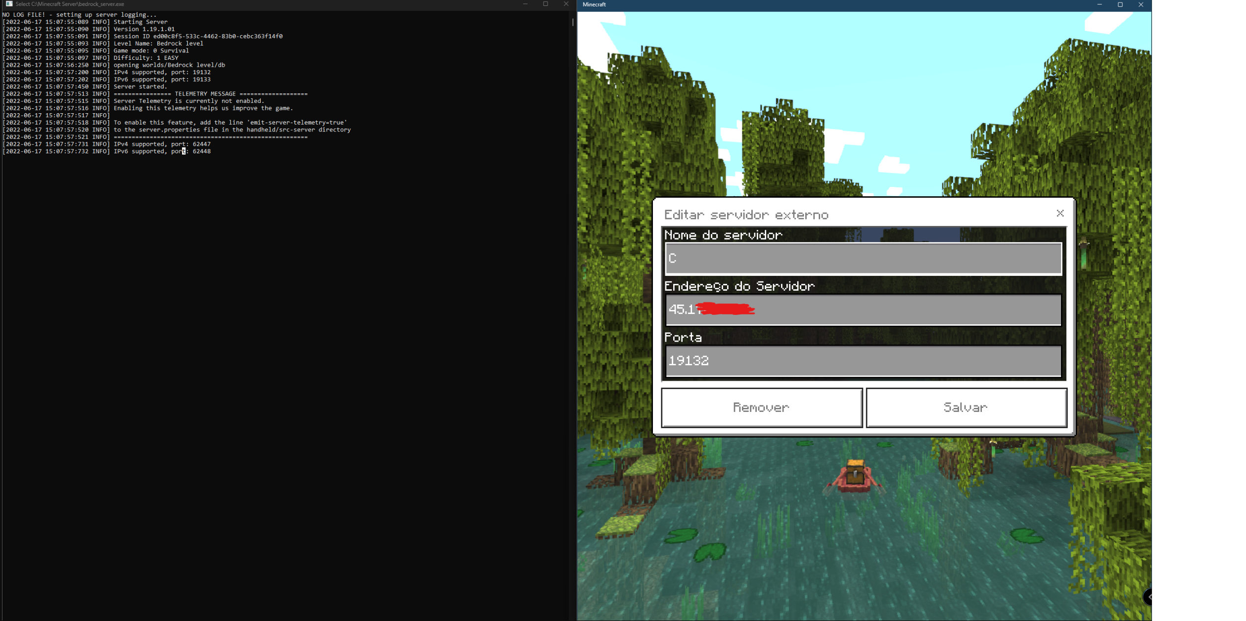 Boa tarde, estou relatando um bug onde não consigo acessar o servidor local da minha máquina no Minecraft Bedrock, mesmo usando o comando no CMD descrito no arquivo "bedrock_server_how_to.html". Toda vez que eu tento entrar no servidor, nunca consigo, apenas usando o IP privado e desativando o firewall do Windows. Com o firewall do Windows ativado, eu não sou capaz de entrar no servidor nem com o IP privado do meu computador e nem com o IP público. Minha necessidade de usar o IP público é que meus amigos podem entrar usando ele, e não da minha rede LAN. Eu também já abri as portas 19132-19133 no roteador/firewall e nada!