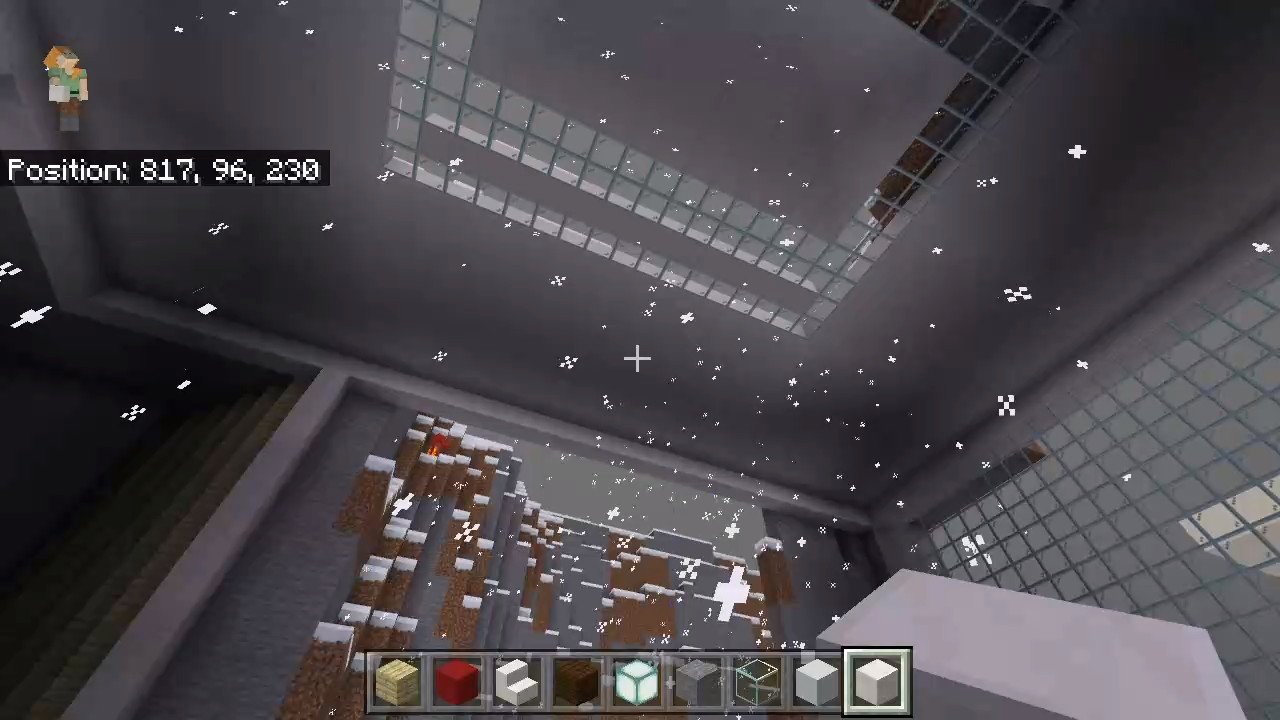 Snow falling from sky goes through roofs and other buildings. There doesn't seem to be a way to stop it.