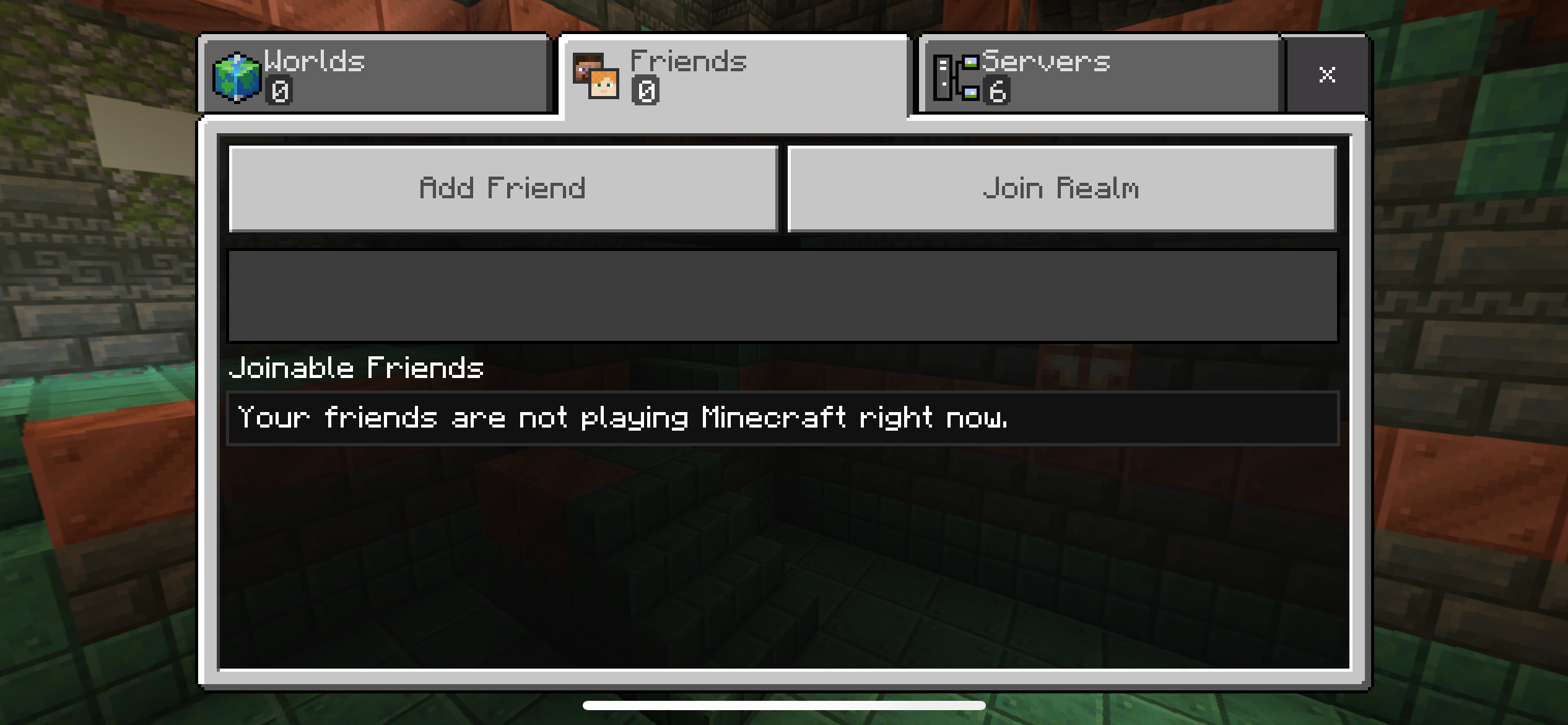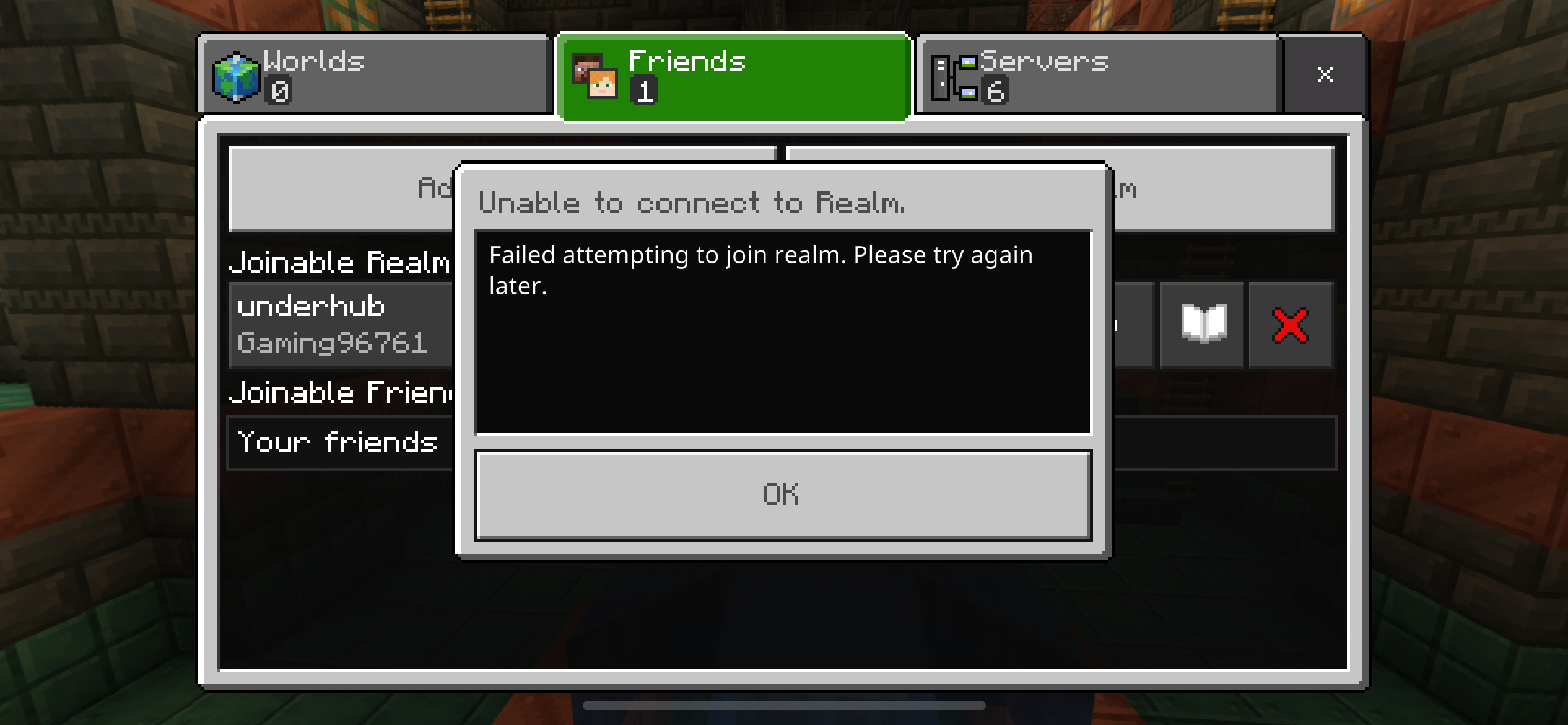 It's been almost 4 days and I haven't been able to join in my friend's realm while the other members aren't having any issues about it. Before this issue, I couldn't see the button to click for joining the realm and now it's stuck for hours on loading even tho I can see the other members playing in it. When I try to join one of them, it disconnects me. I've asked for the owner to send me a link, when I clicked it, it made me go in Minecraft but the screen stayed stuck of the main page, without any buttons but the background and it wouldn't load any further still for hours.
