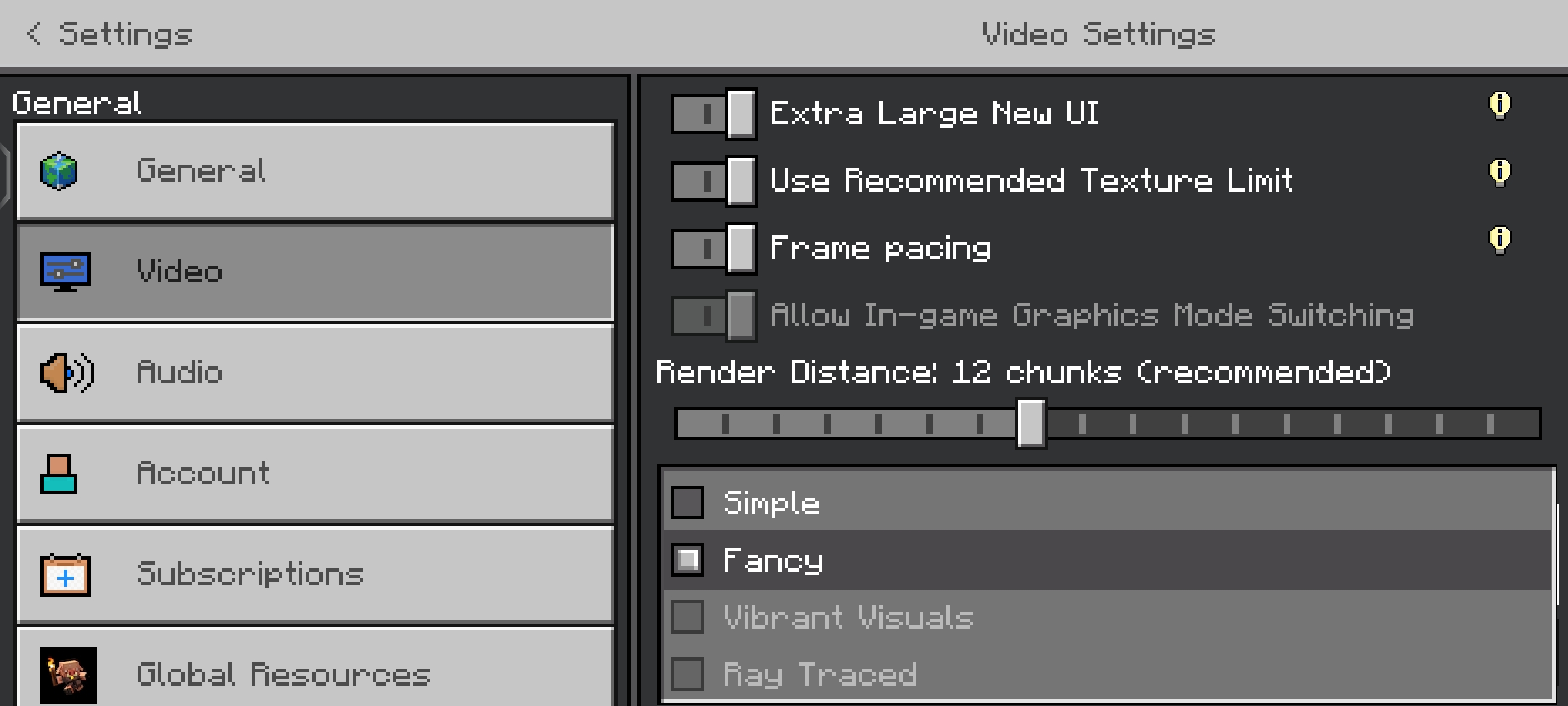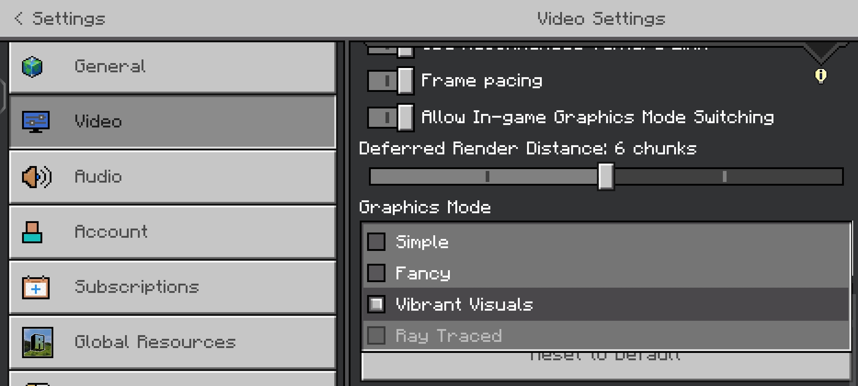 Open Vibrant Visuals, the first settings page and create a world, press settings and turn off Vibrant Visuals, exit the game and come back in, it makes the textures look weird.