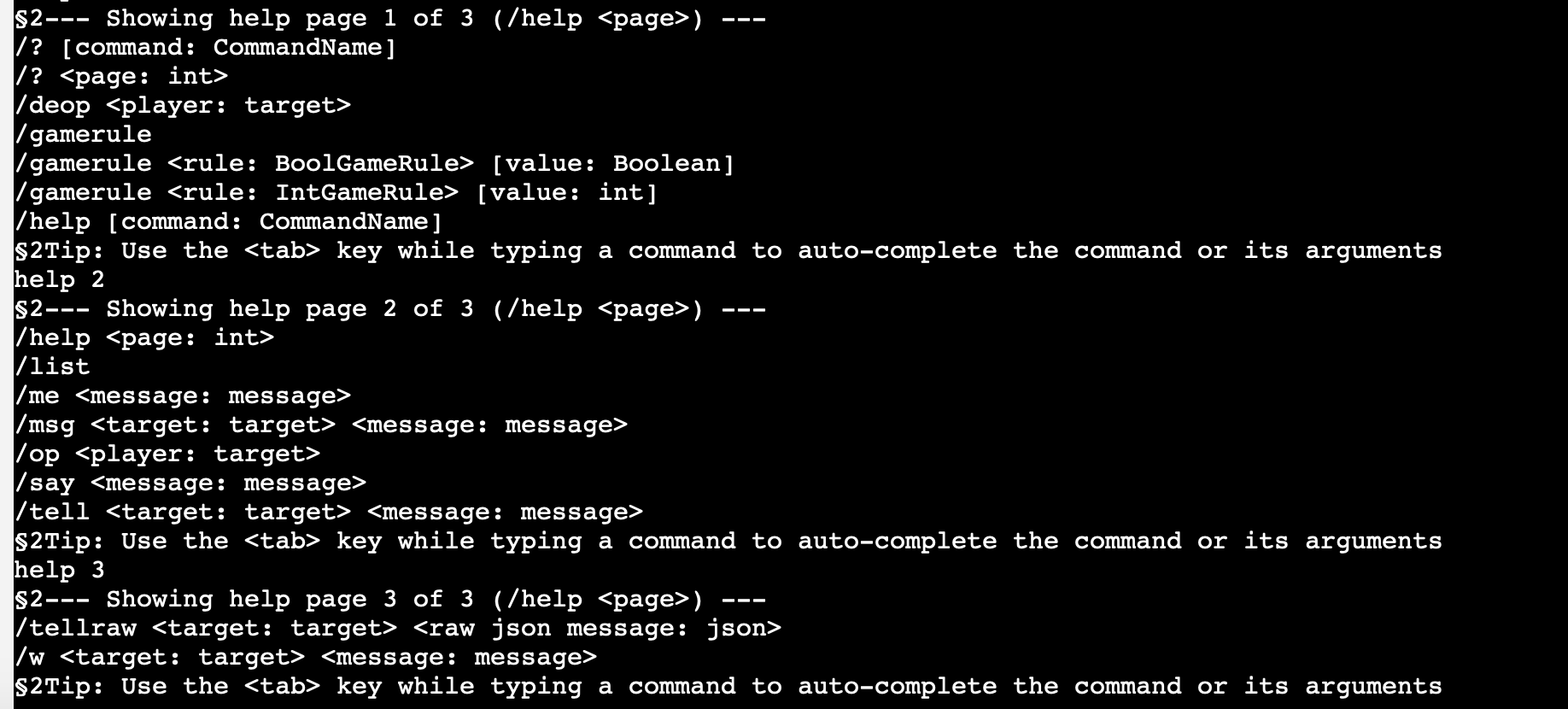 when typing the help command, there are only 3 pages, there is no list that includes the commands give, xp, enchant, the first couple of versions when you type help it will show you these commands.