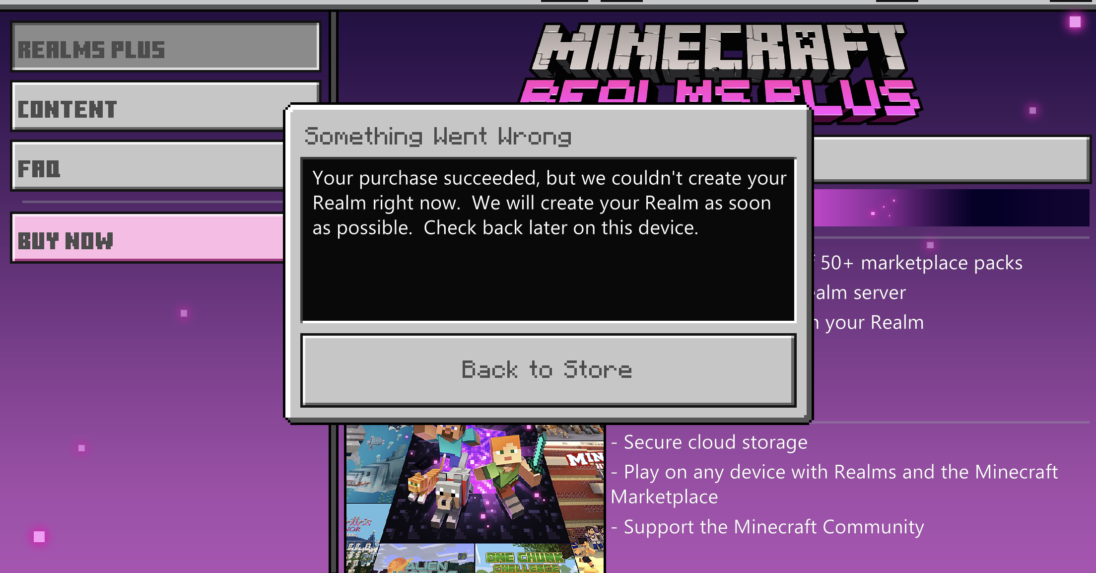 I paid for a realm on iOS and I got this image that said the my purchase was successful but they couldn't create my realm now and it will be created as soon as possible but it has been over 2 weeks and I haven't gotten anythingΒ