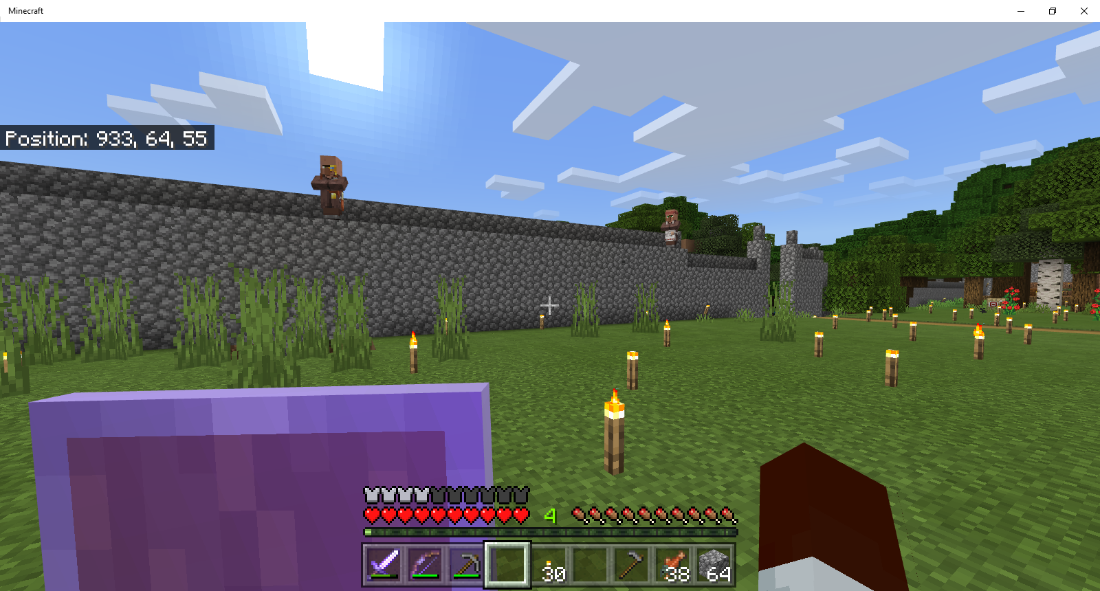 I came to my village to find that somehow some of my villagers were on top of a wall in which there should have been no way for them to get on top. I don't know how they got up there, but I do know I didn't put them there and don't want any more appearing in places they shouldn't be able to get to.