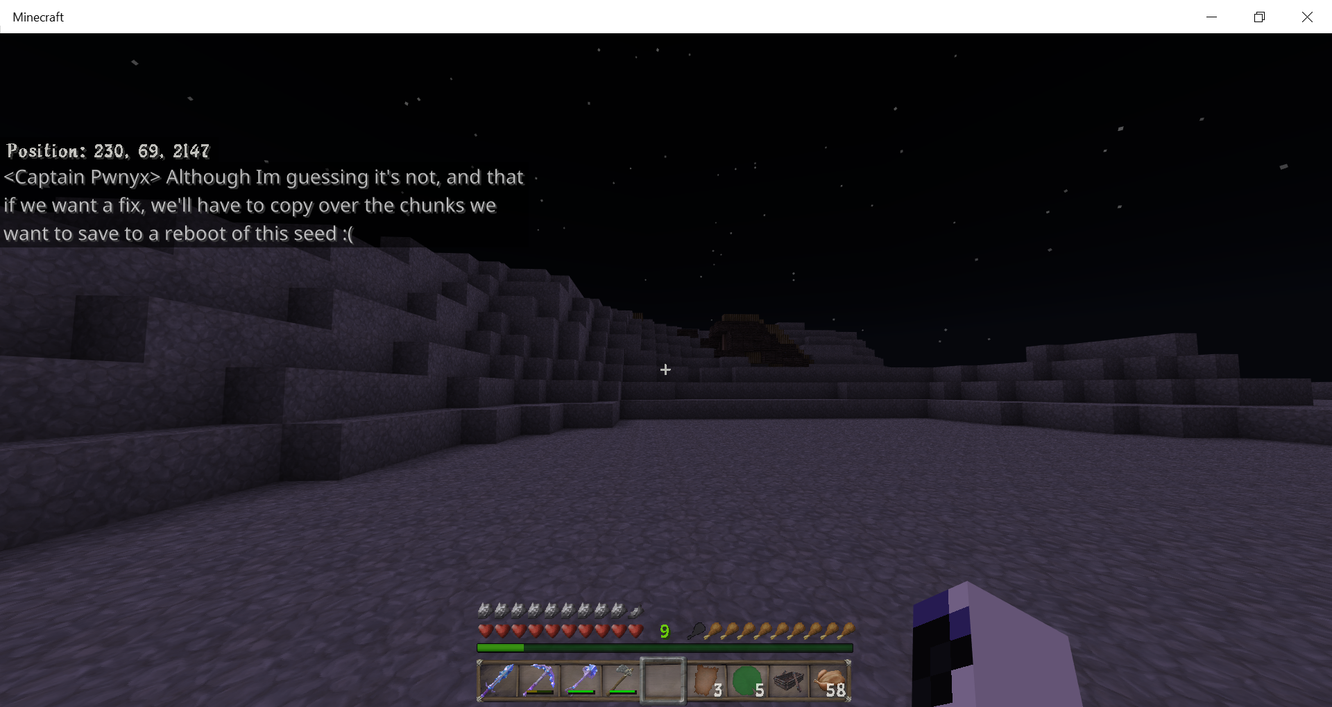 See attachments for screenshots of the weird world gen. We were fortunate enough to be able to dig up a few "before" screenshots to compare with the "after" screenshots. We also have a few screenshots of underwater structures that are now sitting on stone, a weird chunk border, and an example of a map area we explored that used to be more diverse, but is now mostly stone.