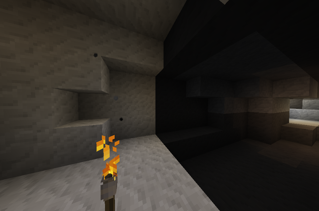 2. When the bug occurs you start breaking the blocks in the dark chunk to create a block-update and fix the lightingbug.
