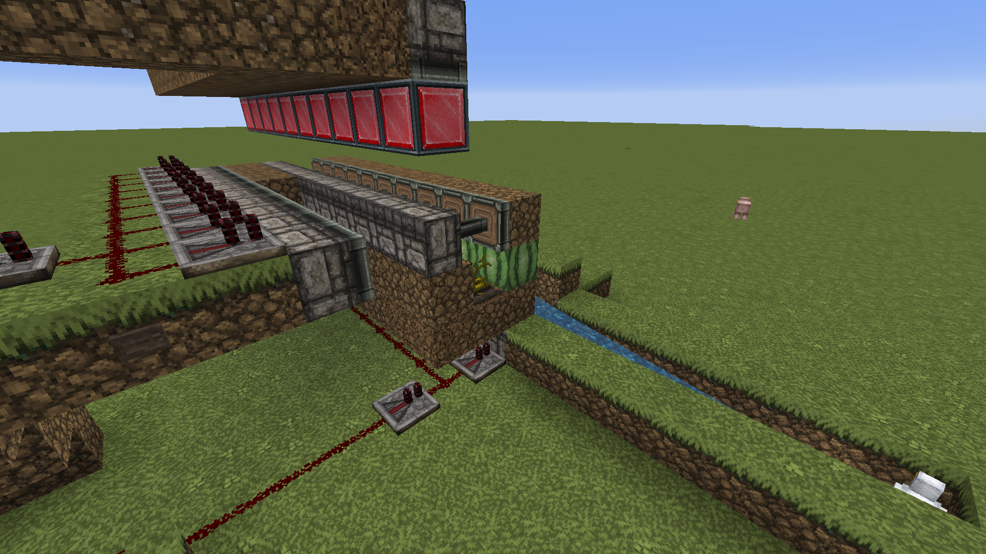 While testing an automated farm design, I came across an issue where a piston would remain extended if it was originally powered by a Redstone block, and the Redstone block was retracted using another piston. Note that this only happens if the Redstone block touches the top (highest surface by y coordinate) of the piston.