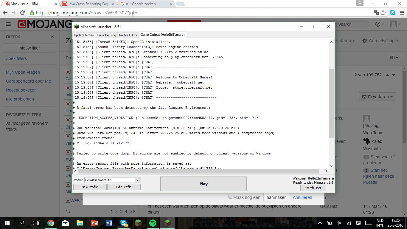 Well i have a problem. Cubecraft is one of my favourites servers. But each time i want to join it, i get a loading screen en then minecraft crashes. I really want to play! Please help me.