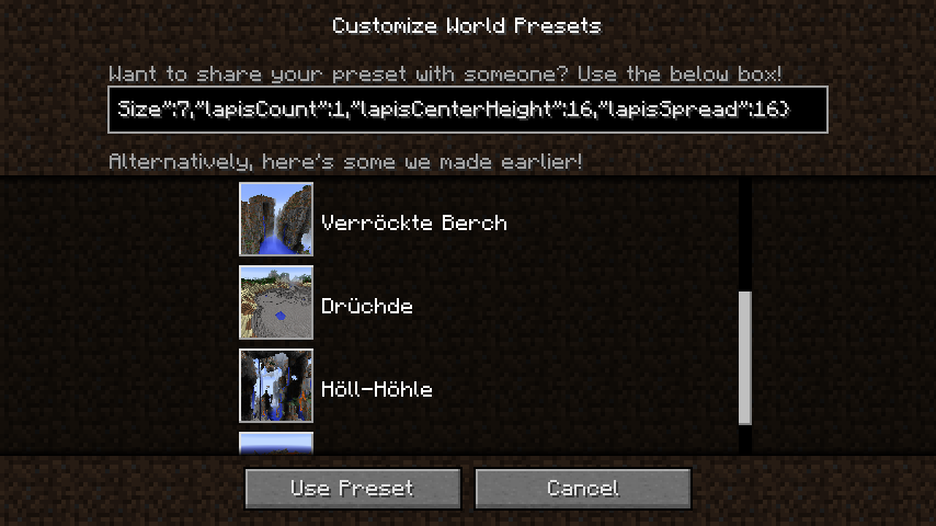 → Observe that the preset names are still in that languageRestart Minecraft