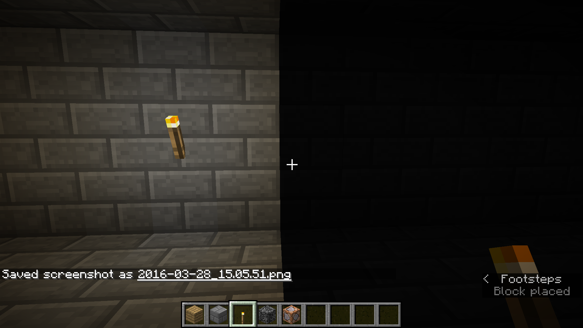 Basically, adding a light source (or sometimes removing it) will make the lightning cut off at a certain point, making one part illuminated and another dark, without any kind of transition. It sometimes "fixes" by further updating the lightning, or opening the game menu and closing it.