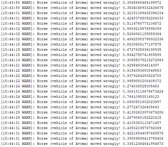 Horse (vehicle of <user>) moved wrongly! 0.5Horse (vehicle of <user>) moved wrongly! 0.5Notes