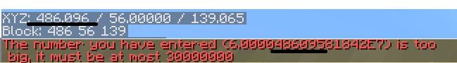When you enter a too high relative number for a command the error message calls the sum of your position and the relative teleport value "the number you entered" instead of the relative value you entered.