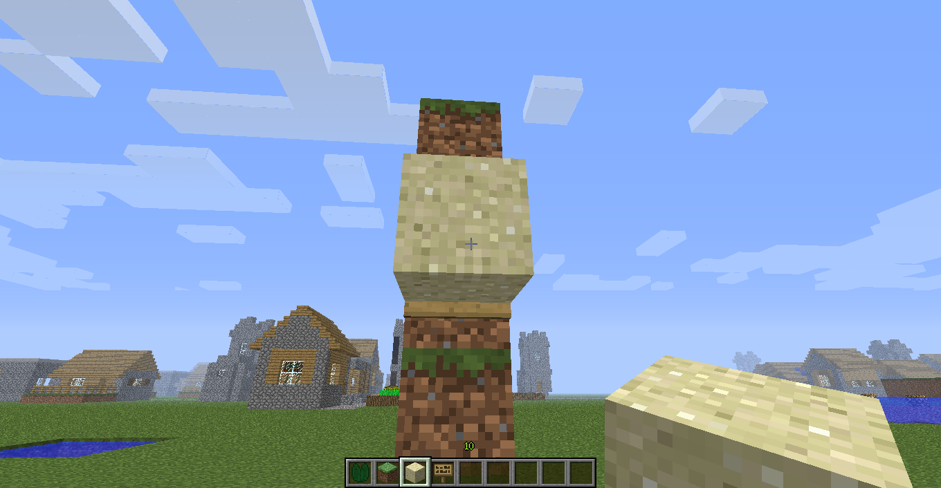 (singleplayer) I made tower of five grass blocks, then I placed sign on it, and on side of top block I placed sand. The falling sand fall through sign. Weird.