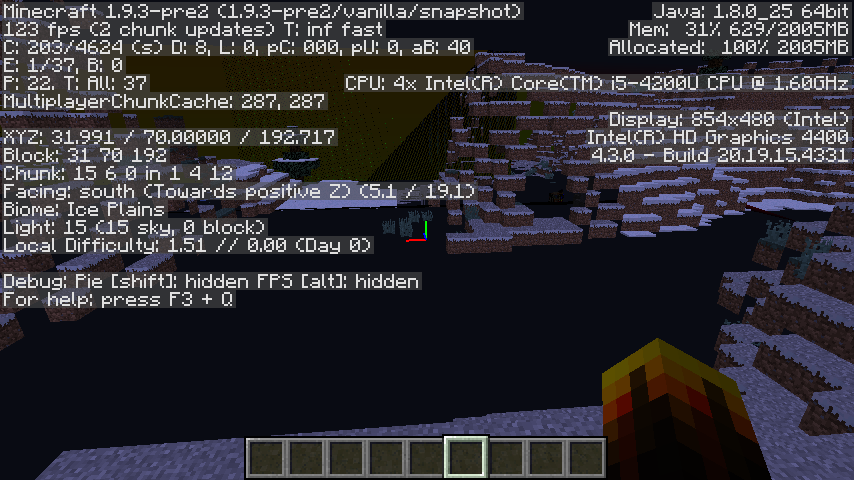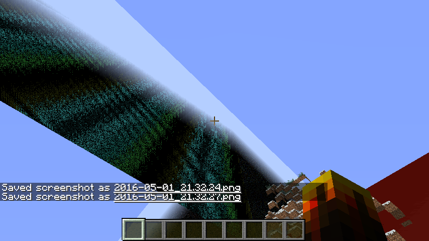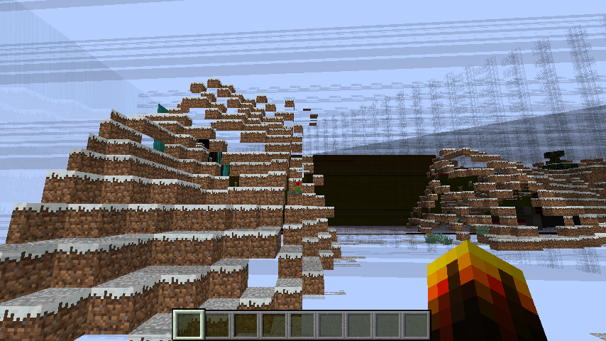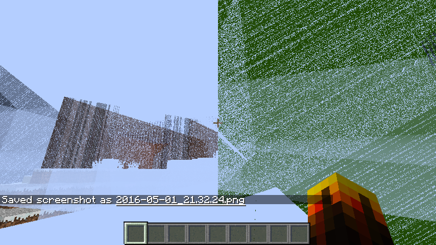 As shown in the pictures the game is practically invisible since everything in the game looks broken it seems to me like a broken texture issue. I Opened a new world and boom everything is red green and blue like crazy and you cant play the same since you can barely see the ice under your feet. Everything becomes messed up lines that isnt playable!