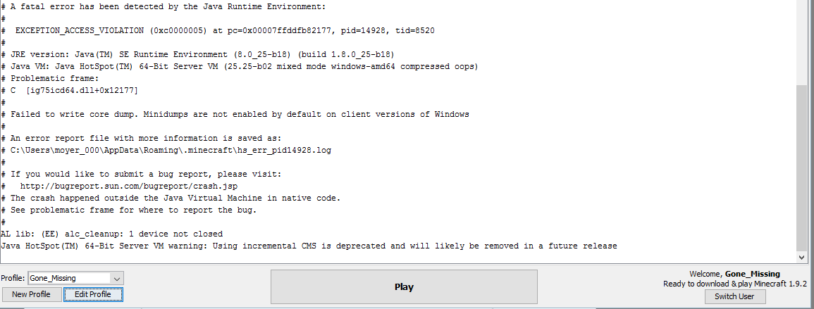I'm using Windows 10, I'm using Java Version 1.6.0_34, I have deleted and reinstalled the game several times, and the game closes or something every time I open up a Single Player or Multiplayer game. I have my video settings on the lowest, even though my computer can run Minecraft on max graphics. I have attached some screen shots (via gyazo) of what it says after the game closes.