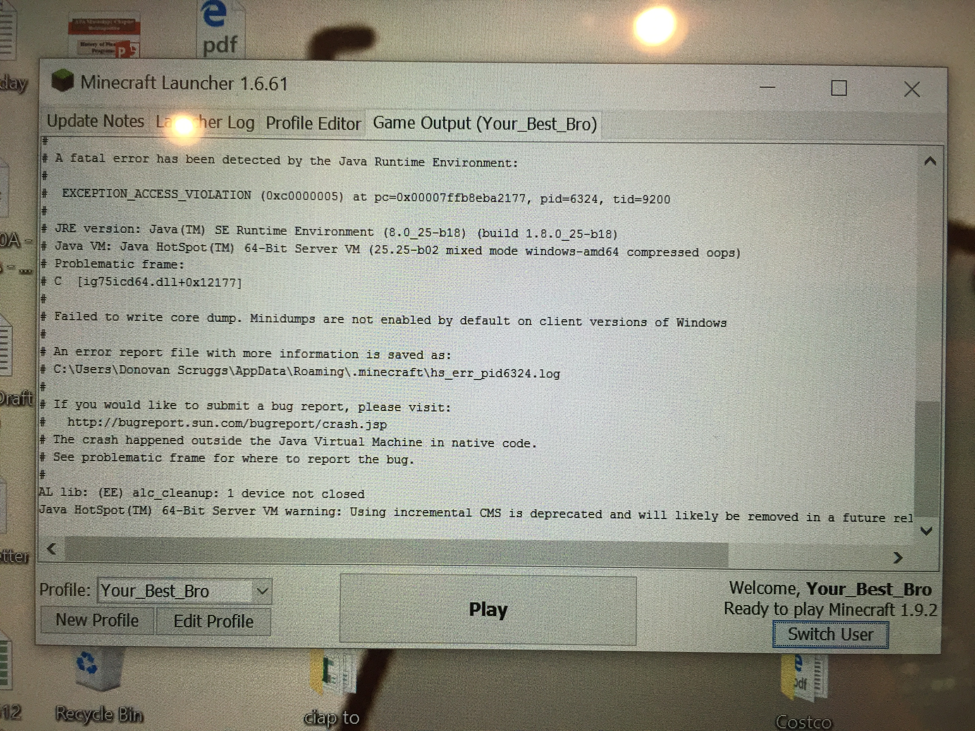 On 5-7-16, I bought Minecraft for my daughter on our Surface. When she tried to create a new world, she opened her inventory and was sent to Game Output. Every time she tried to create a new world after that, it continued. She can't log in from the website because it tell her to buy it again. Please help if you can.