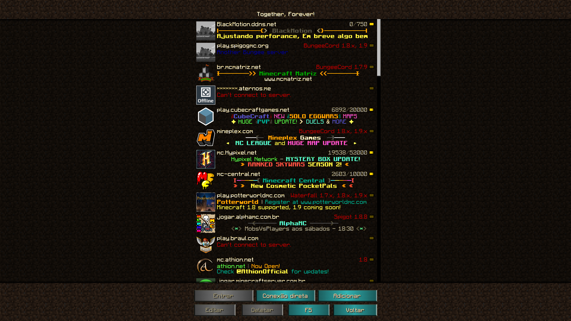 Second is what I see when I press "Refresh", "F5" or go back and enter again in Multiplayer (this image still for a long time, pinging infinitely).