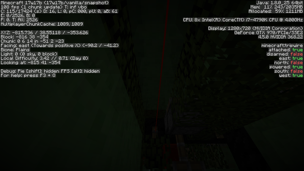 Confirm for 1.11 release. Tried removing and replacing string on the active tripwire and that does not fix issue. If I break the trip wire hooks and replace it seems to reset. It will work as intended for random amount of time, sometimes days, then get stuck on activated. This is being activated by hostile mobs.