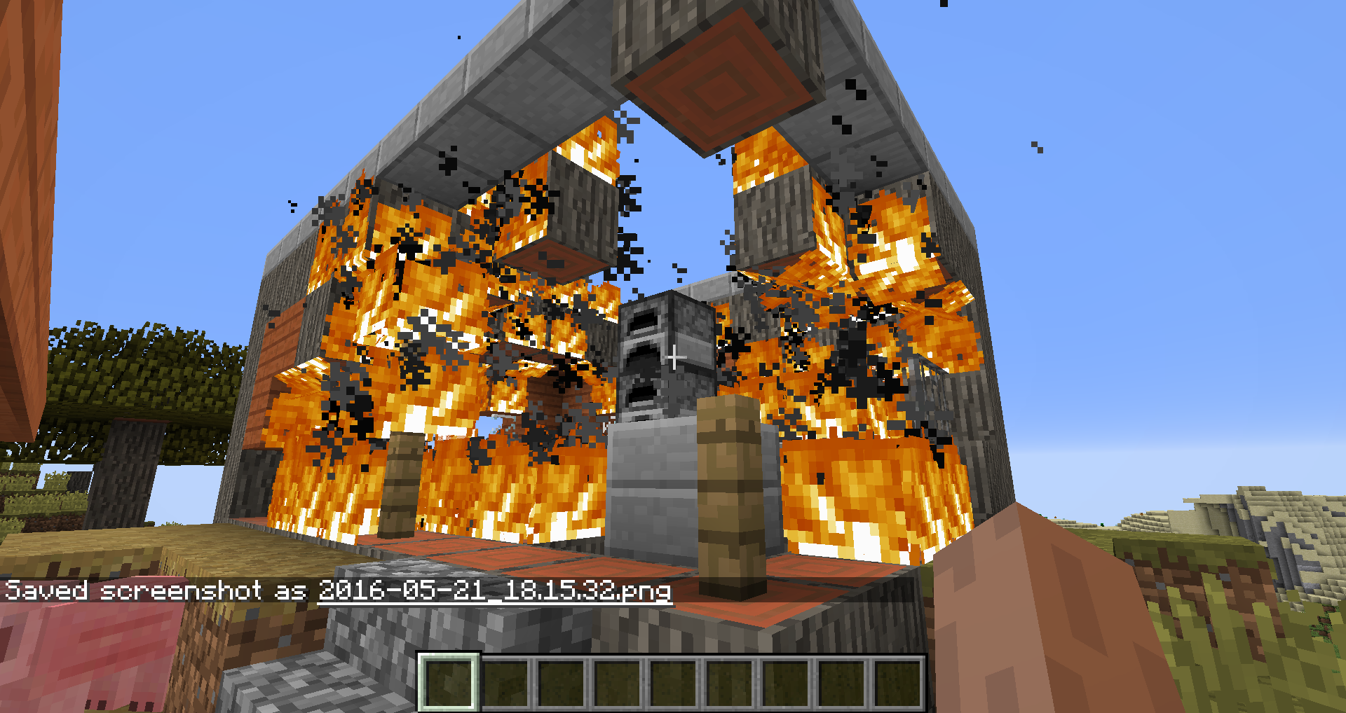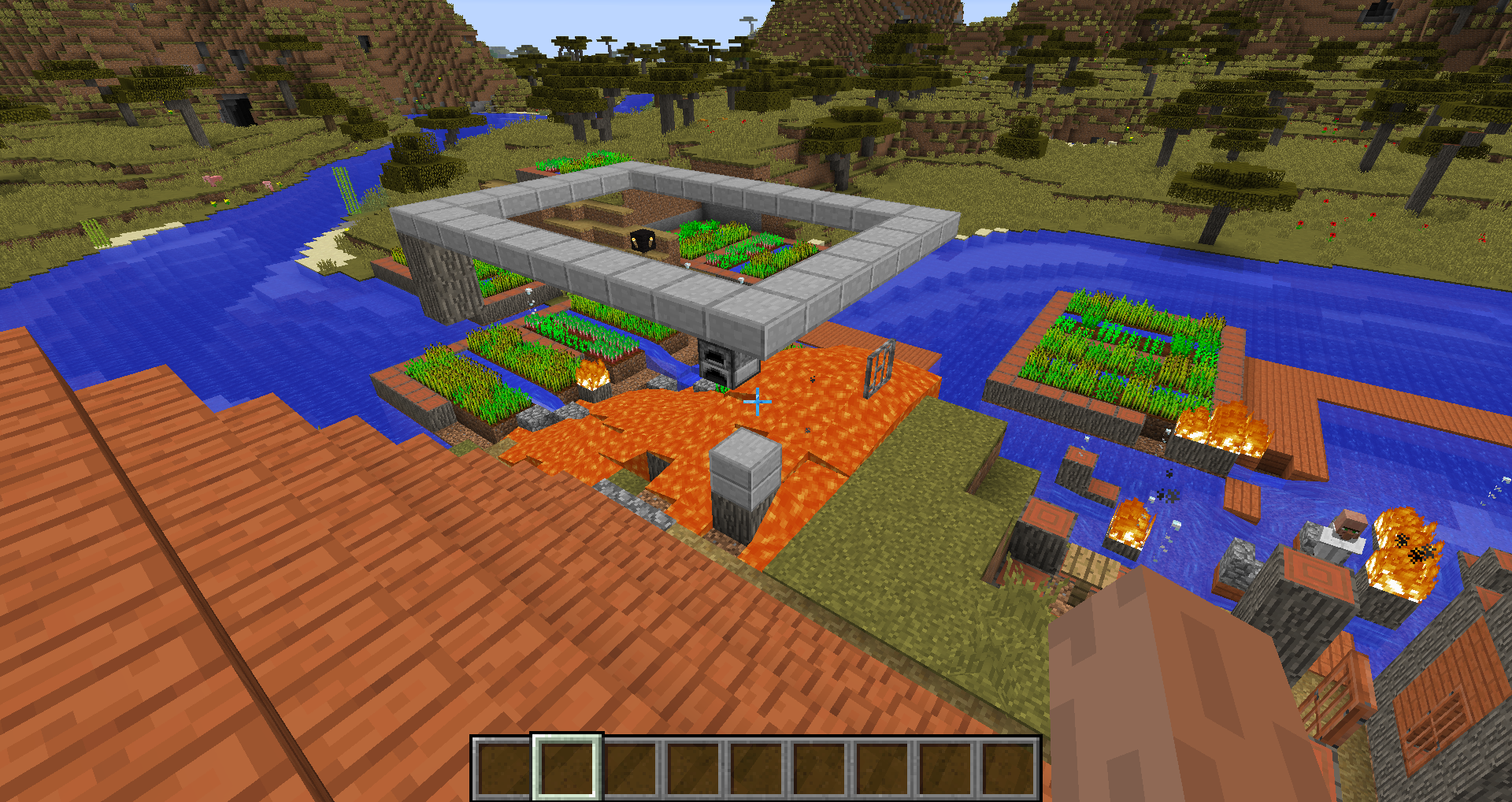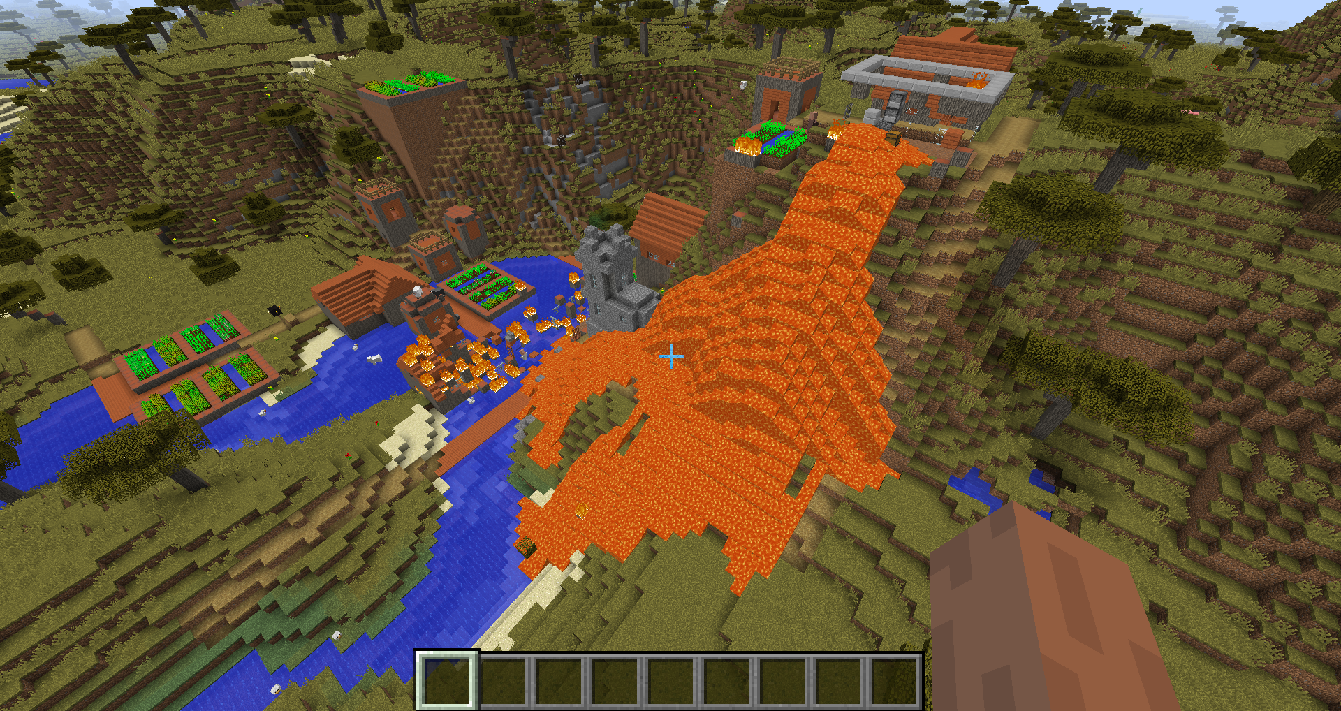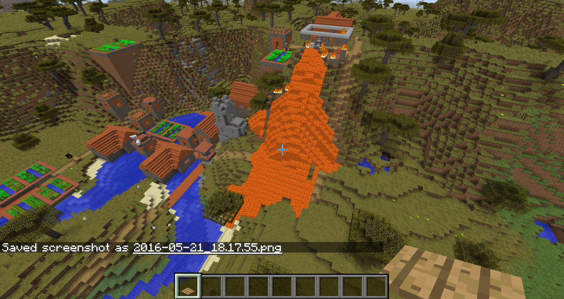 Savannah villages now use acacia wood more than before, including in blacksmith shops. The lava source blocks in these structures used to be surrounded by cobblestone, but are now surrounded by acacia wood which will catch fire. Usually this results in the entire building burning to the ground, allowing the lava to spill out and destroy other buildings. This has happened in every single savannah village I have seen in this snapshot so far (about 4 or 5). This might not technically count as a "bug", but it definitely seems like something that needs to be fixed.