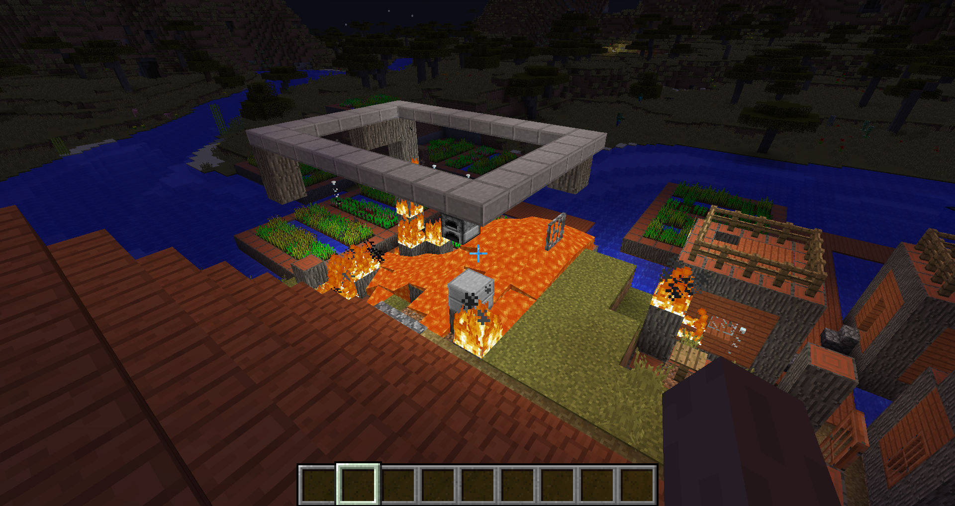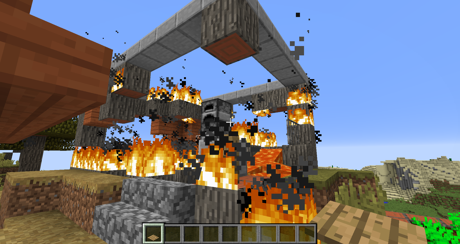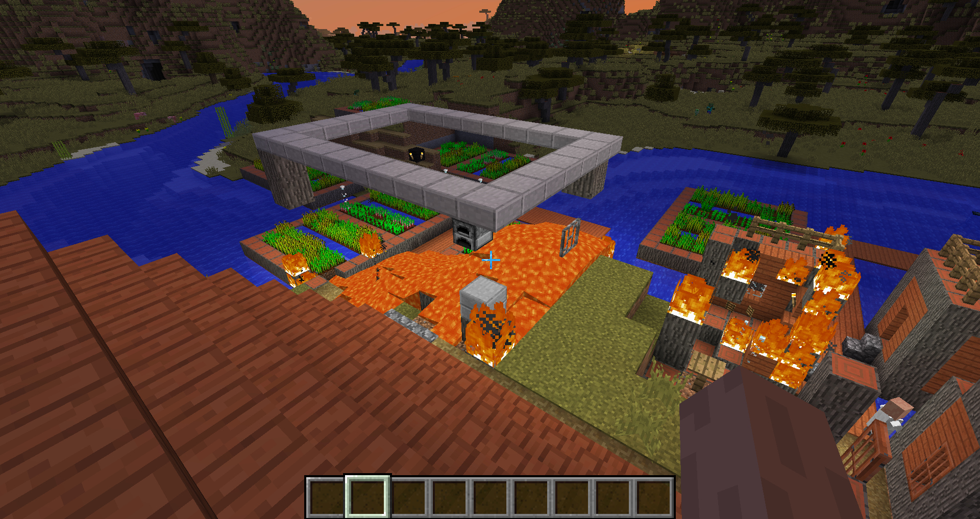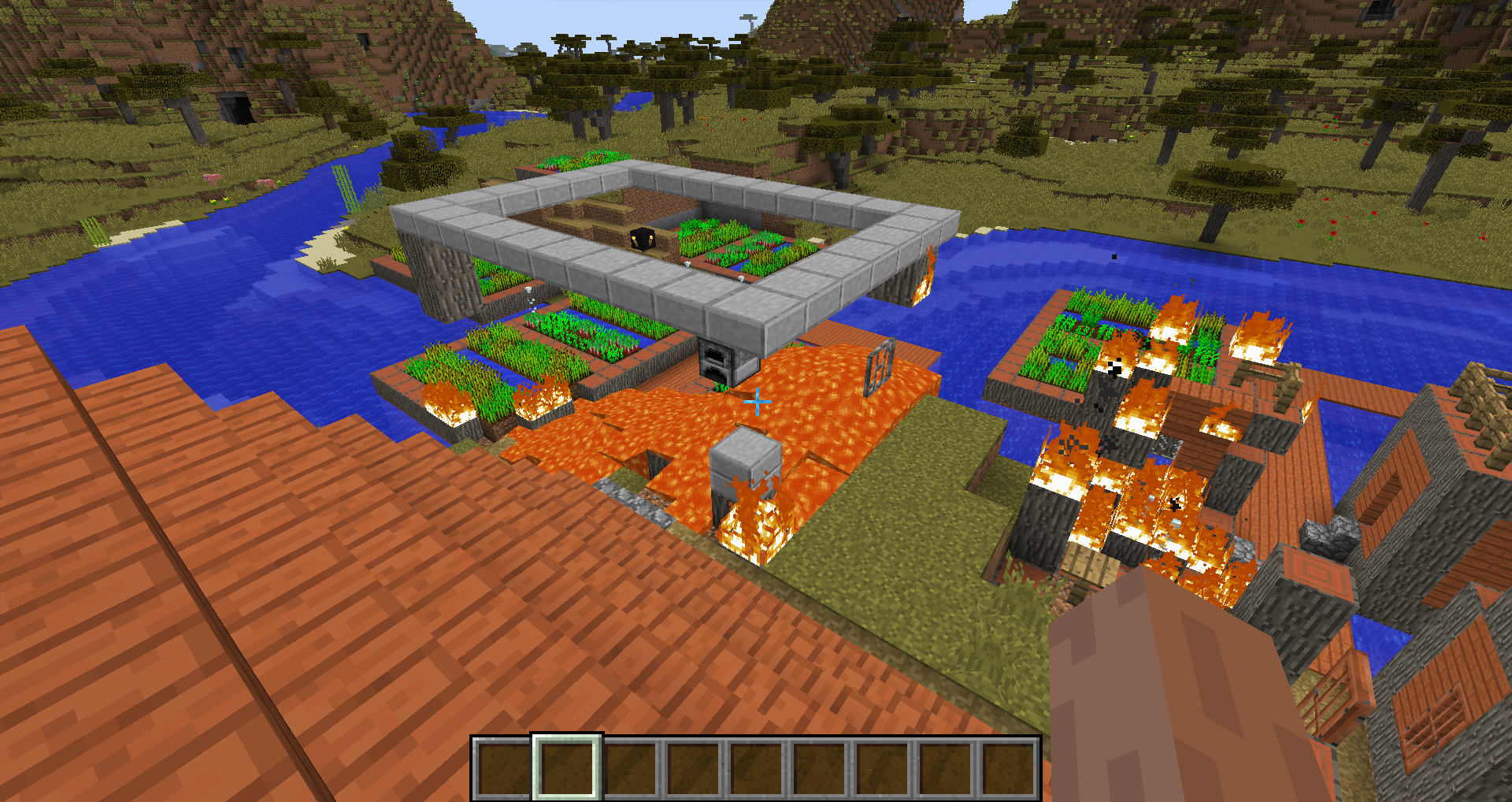 Savannah villages now use acacia wood more than before, including in blacksmith shops. The lava source blocks in these structures used to be surrounded by cobblestone, but are now surrounded by acacia wood which will catch fire. Usually this results in the entire building burning to the ground, allowing the lava to spill out and destroy other buildings. This has happened in every single savannah village I have seen in this snapshot so far (about 4 or 5). This might not technically count as a "bug", but it definitely seems like something that needs to be fixed.
