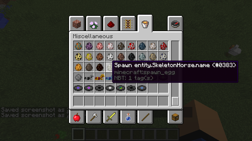 The spawn eggs for Donkey, Mule, Skeleton horse and Zombie horse are bugged