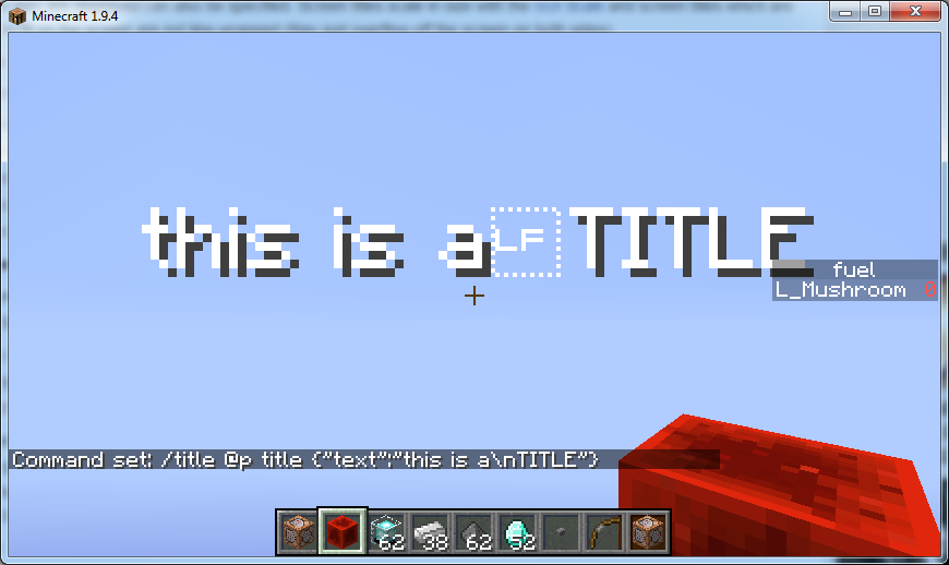 /title @p title {"text":"this is a\nTITLE"}/title @p title {"text":"this is a\nTITLE"}When this command is ran, what is in the attached picture happens.