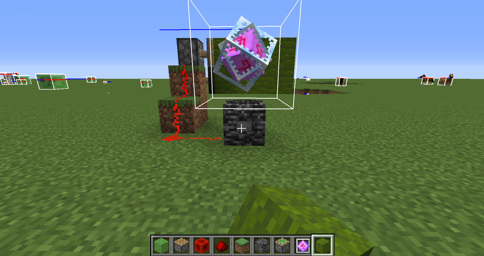 While extending, Block 36 will render in front of the white/blue/red lines that make up the box that visualizes an Entity's hitbox while in F3 + B mode.