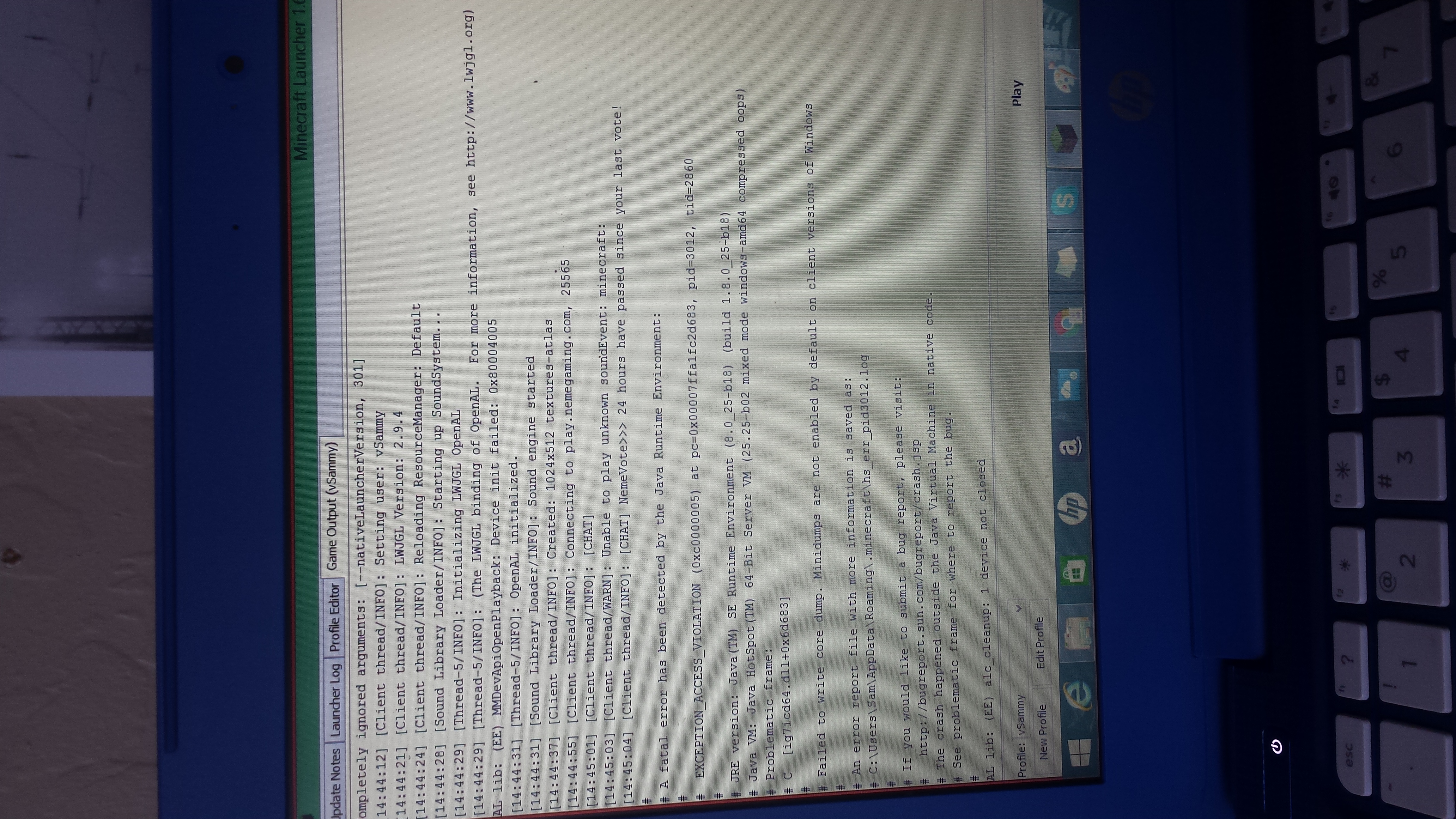 What actually happened was, it kicked me out and sent me to the Game Output screen. So, I tried to go back to the 1.9.4 version, and it did the same thing. I've re-installed Minecraft a couple times now and nothing seems to work.
