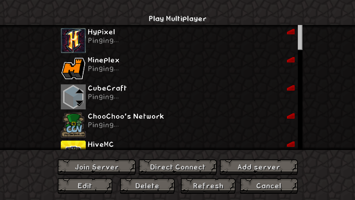Yes, it wouldn't work with all versions. It is working now though, but it takes a couple of seconds to connect to the servers and when adding a new server, Minecraft freezes for a few seconds.