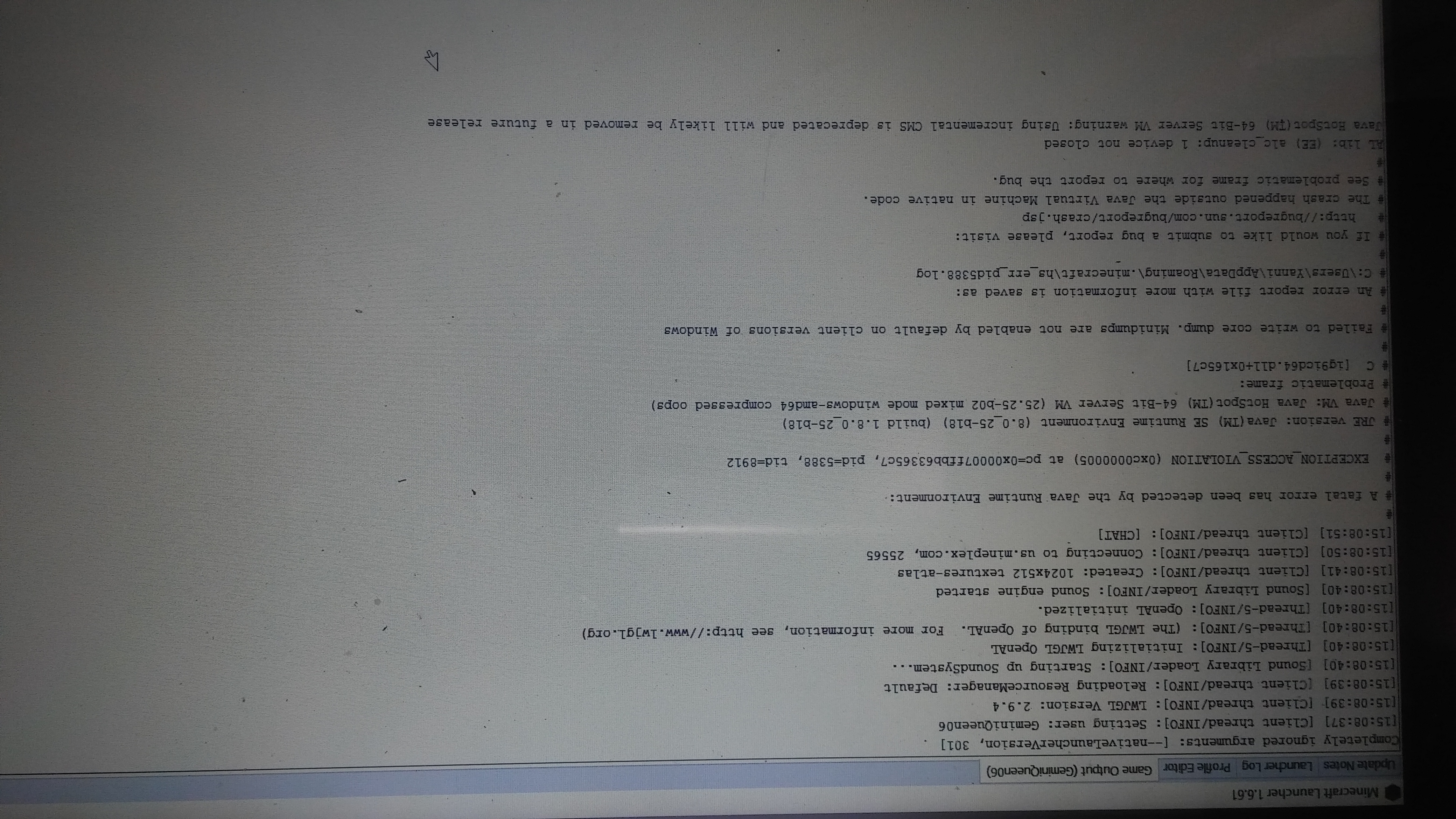 For few times, it goes to a different screen when I login to a server or when I am playing a game and tells me what I did on the server and says that there is a error on with my operating system.