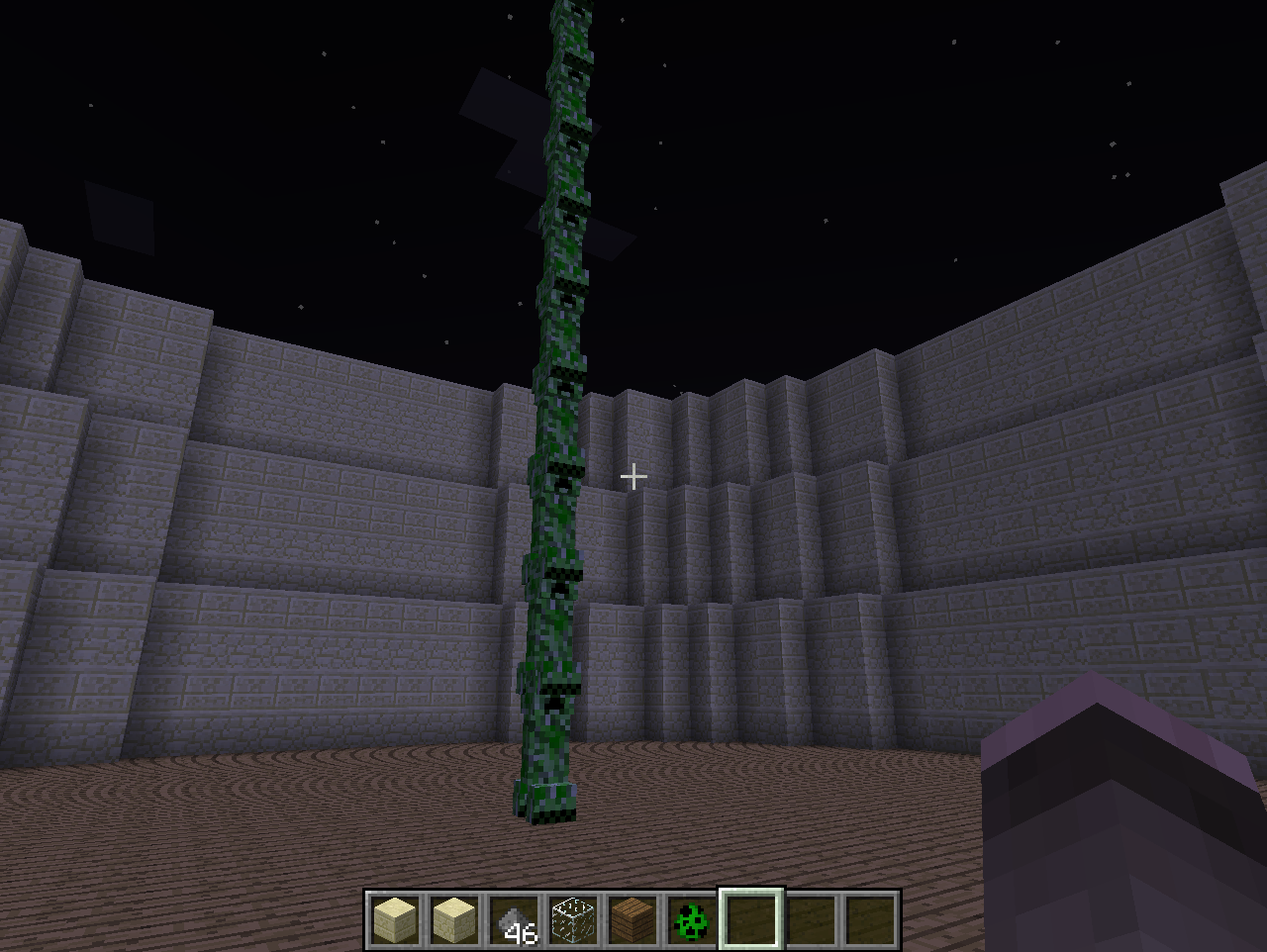 I was messing around with stacked entities, when I tried to create a spawner that spawned one long tower of creepers in the middle of an arena. The spawner worked, but even before I went near the spawner, this tower of creepers was already there. You can't place blocks where it is, it can be pushed by pistons, it doesn't react to you or move AT ALL, the top creeper kept flickering, AND MC edit doesn't even detect it as an entity. Re-logging doesn't work, and the only way to get rid of it is to destroy the spawner, THEN re-log. I have NO idea why this happens, but it's not right.