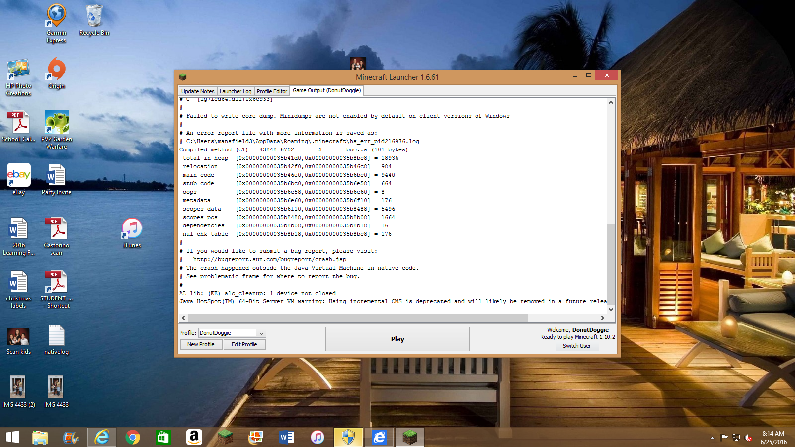 Then, only some of the world loads and seconds later I get a message from the computer saying Java(TM) Platform SE binary has stopped working, and then brings me back to the launcher with the crash information.