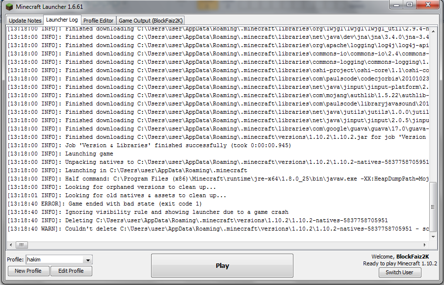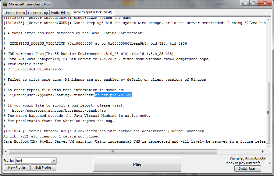 when i will play minecraft, error happened and automatically exit, this error capture in attachment. what must i do for fix it?