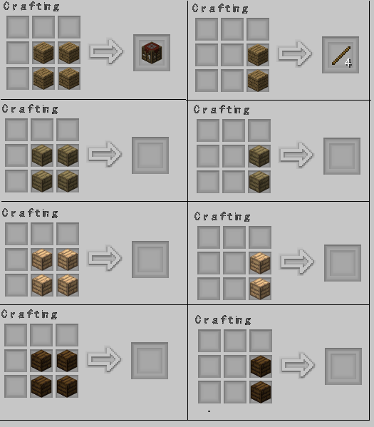 [birch wood planks], [jungle wood planks] [spruce wood planks], cannot synthesize items, in addition to [oak wood planks]...