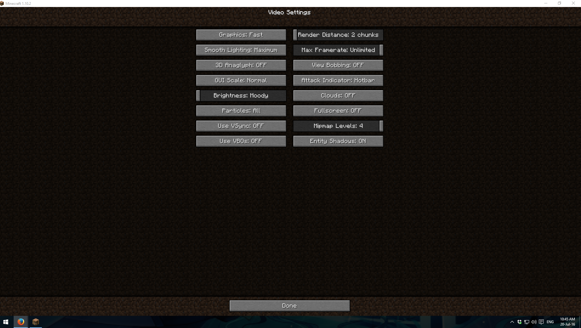 My options in video settings keeps on resetting and going to render distance 2 and wont save on 32 please do something! (Happens every time i log on)