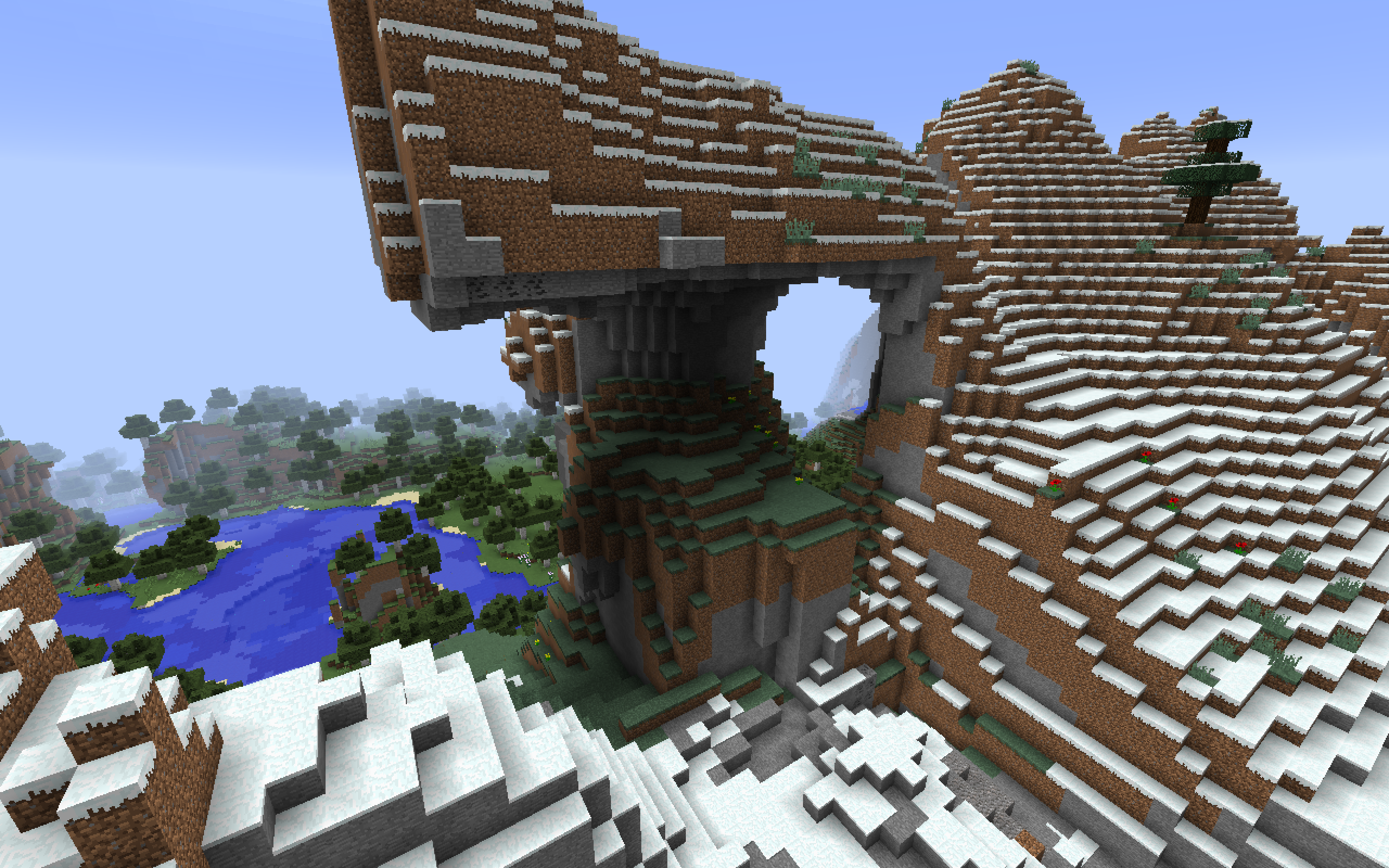 Coordinates: /execute in minecraft:overworld run tp @s 21884.44 102.56 577.34 252.21 28.54→ ❌ Notice how surface blocks generate under overhangs.