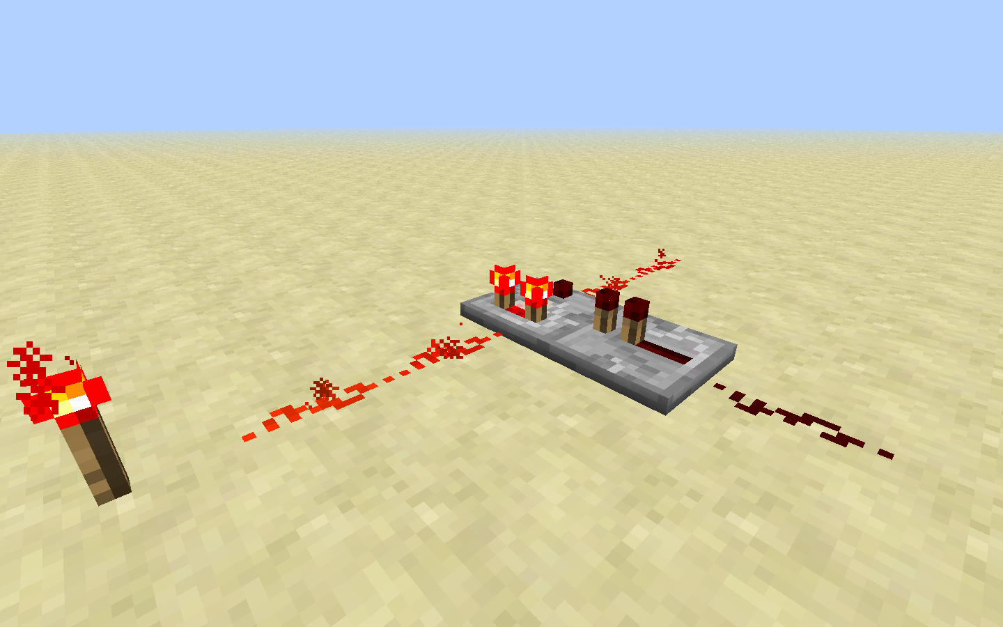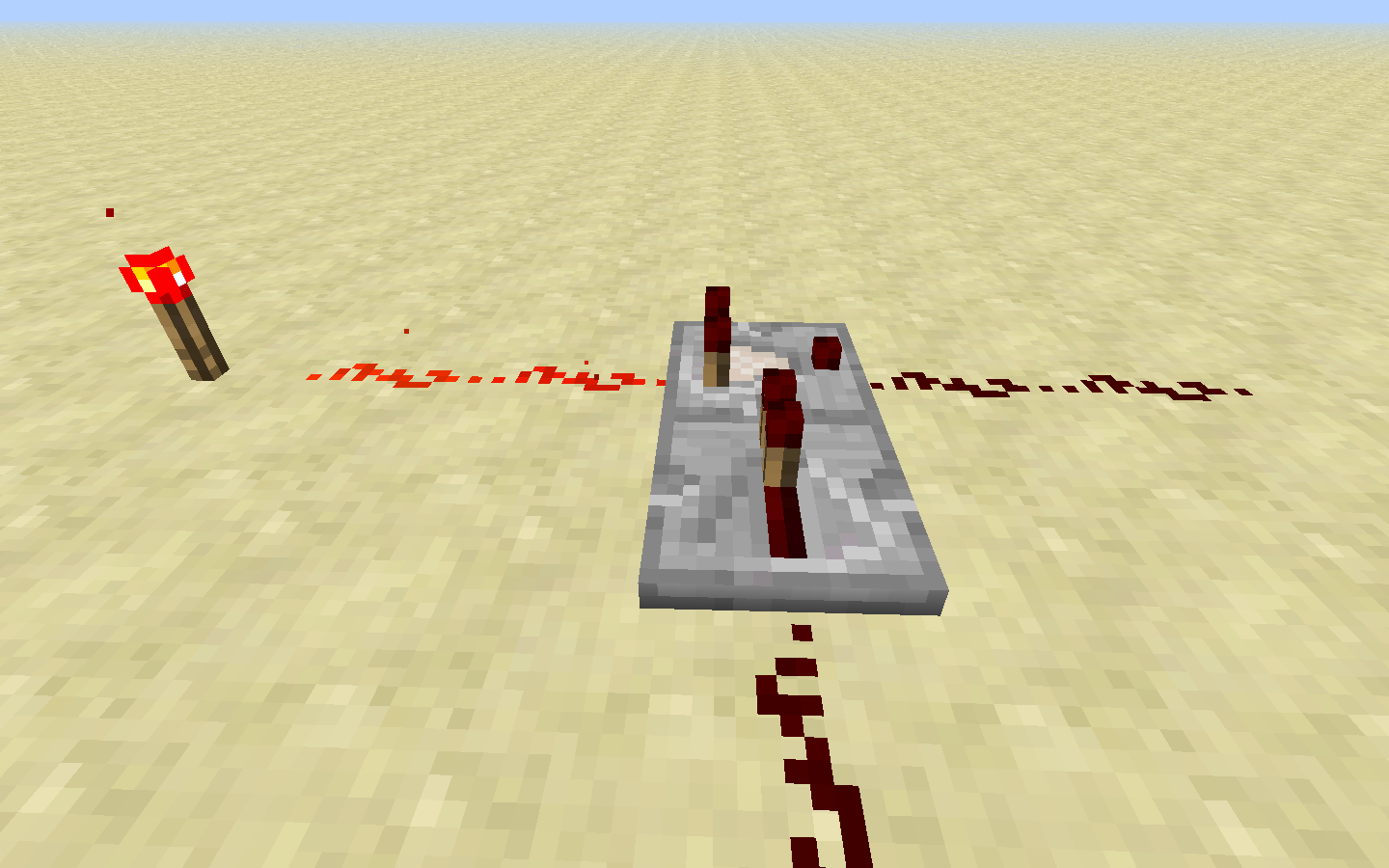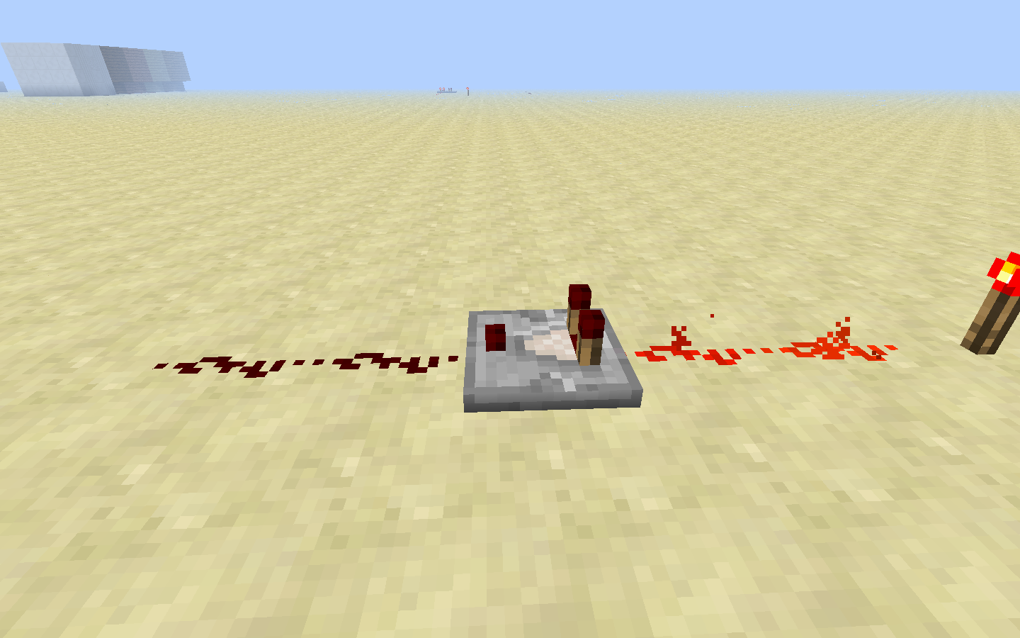 When placing a power source into the comparator and another source on either the left or the right side of the block then switching it to subtraction mode then back to normal mode and then removing the power source on the left or right side of the block the block doesn't update leaving it to not continue sending power through. (Explained better in images)