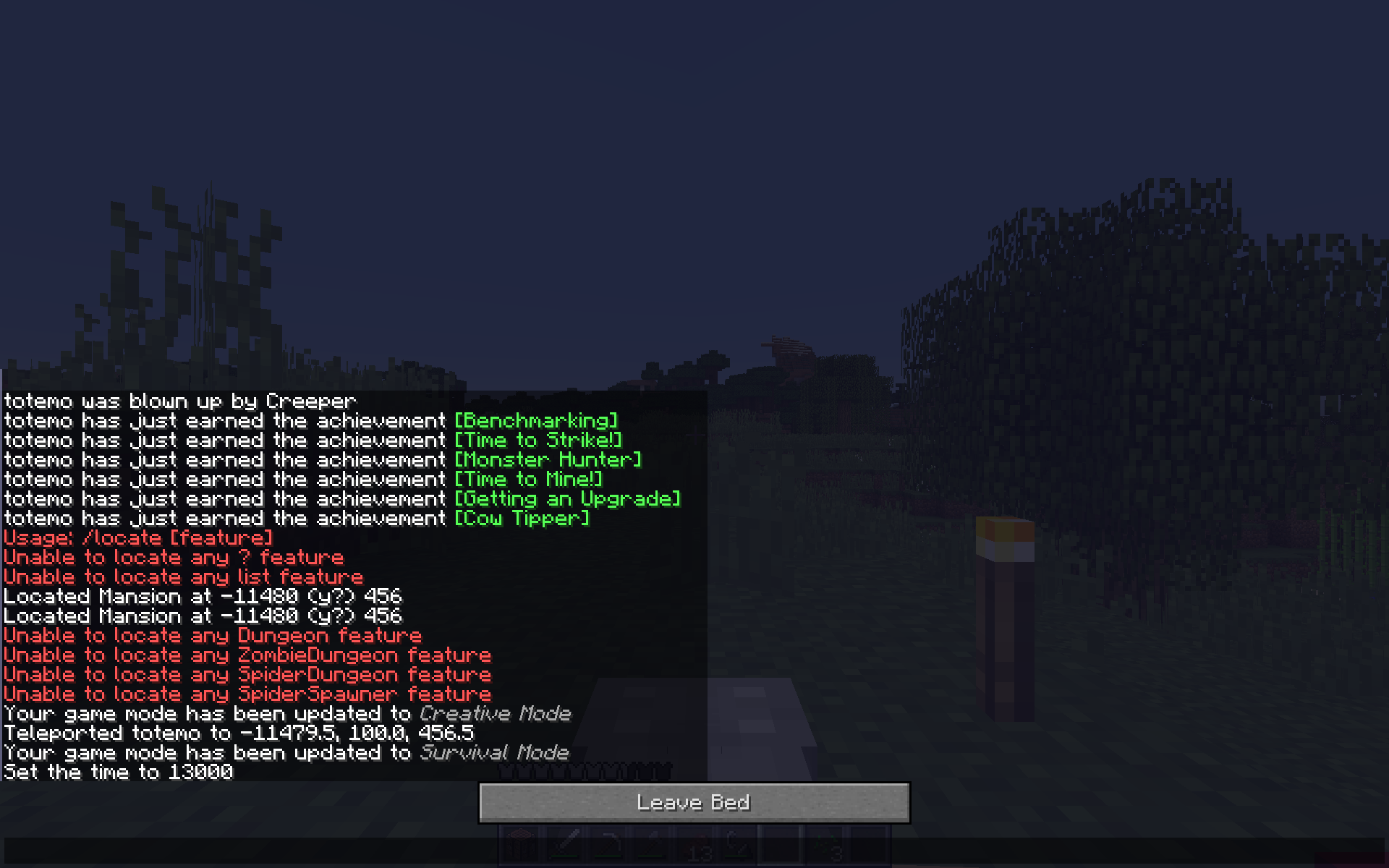 It was close to sunset. Game mode was survival, difficulty hard.