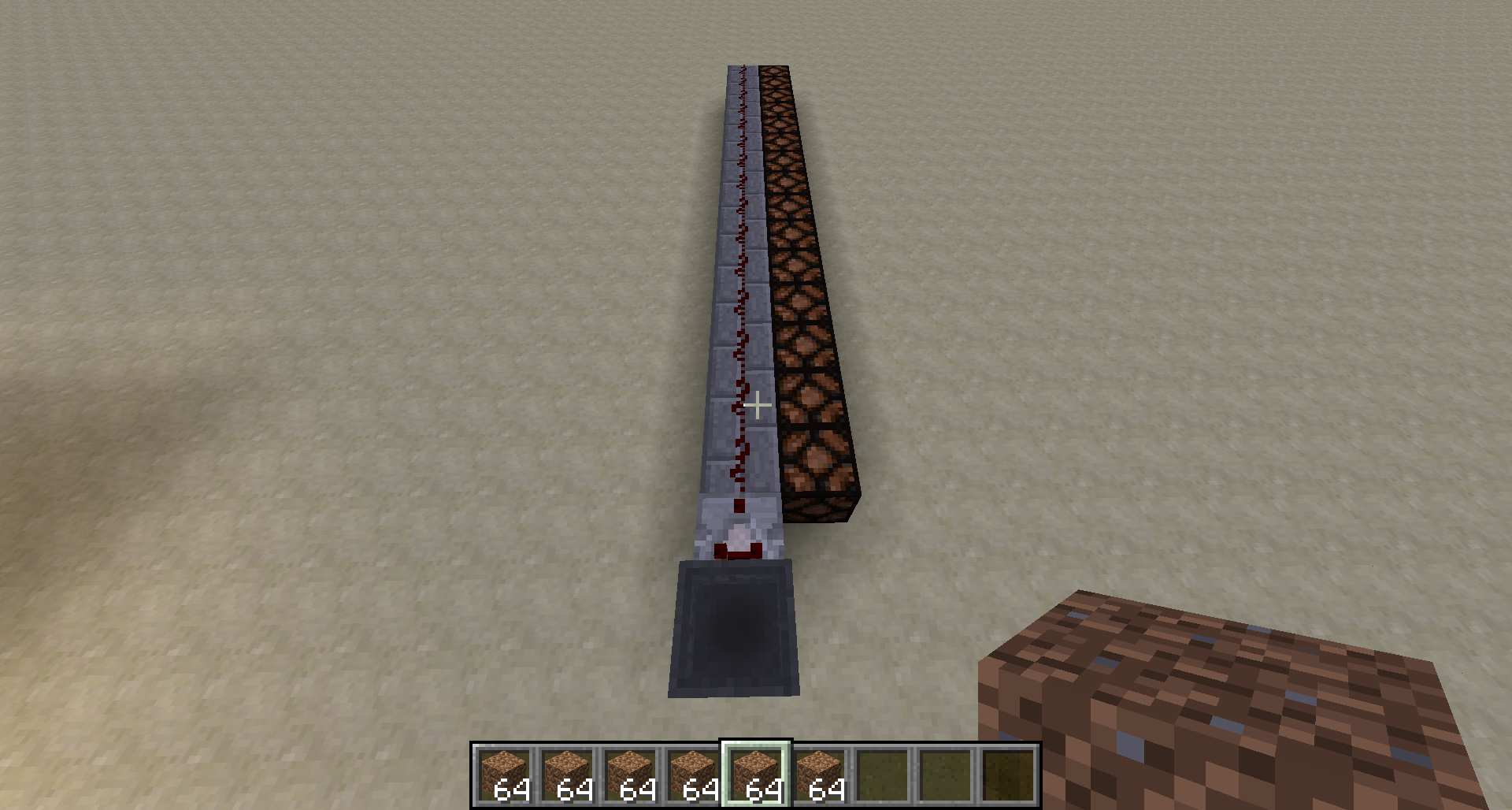 fill 4 slots of the hopper inventory with full stacks of dirt