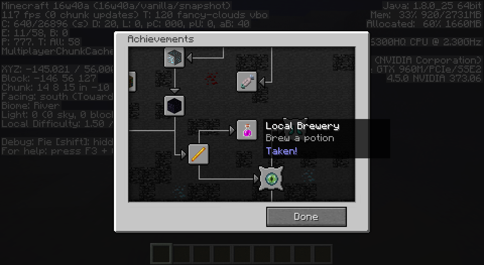 Affects Versions: Minecraft 16w40a, Minecraft 16w41a, Minecraft 16w42a, Minecraft 16w43a