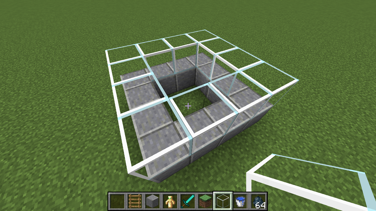 When you look through glass you usually don't see other pieces of glass connected to the one you're looking trough, but when you make a square of glass the visual effect is very strange: you only see one side of the glass block.