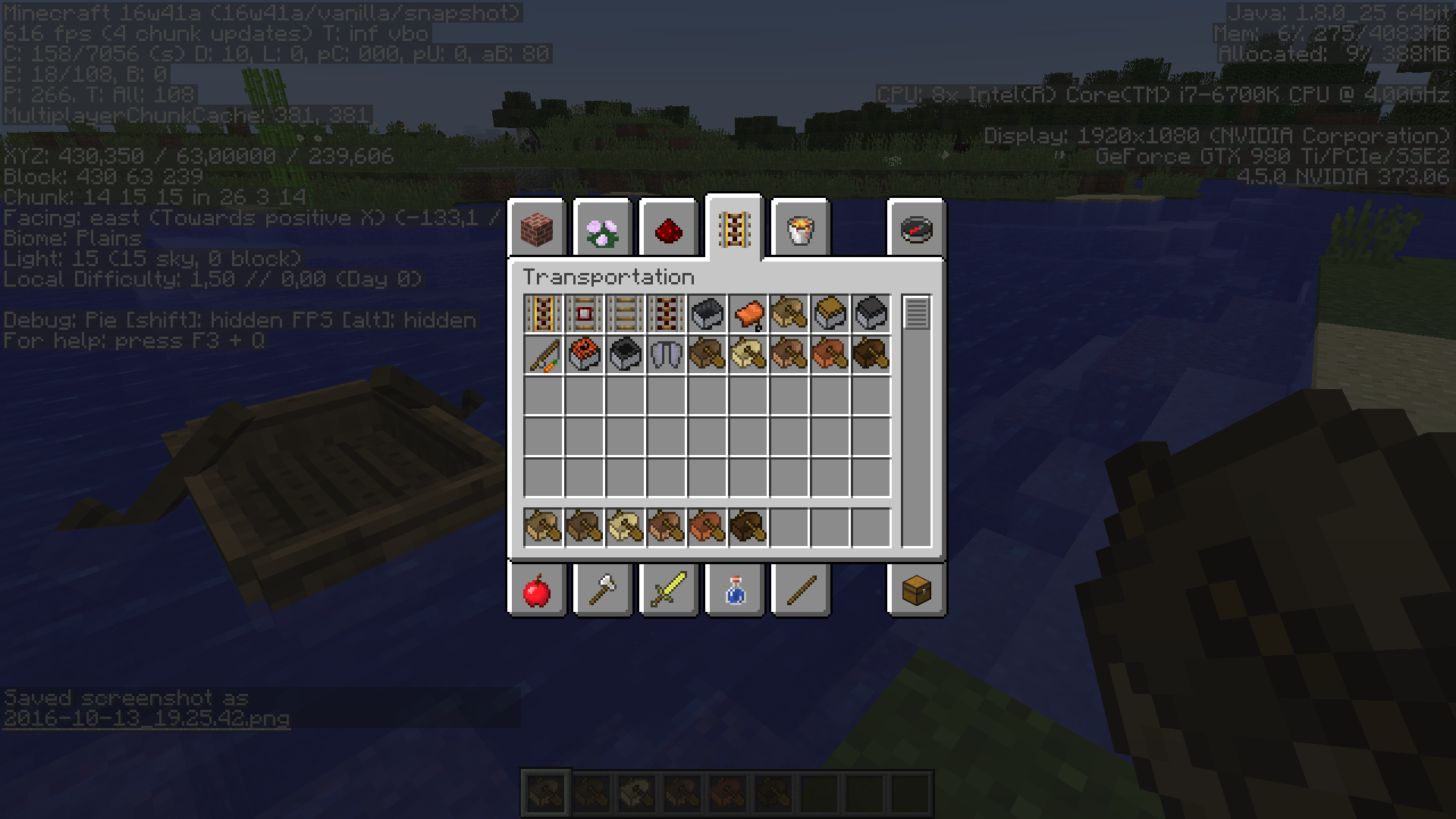 Oak boat is in one, random slot in the Creative Inventory, but other boats like dark oak, spruce, birch are in the last slots. I think this is not "bug", may be bug, but also something wrong in item sorting in the inventory. See the Screenshots bellow.