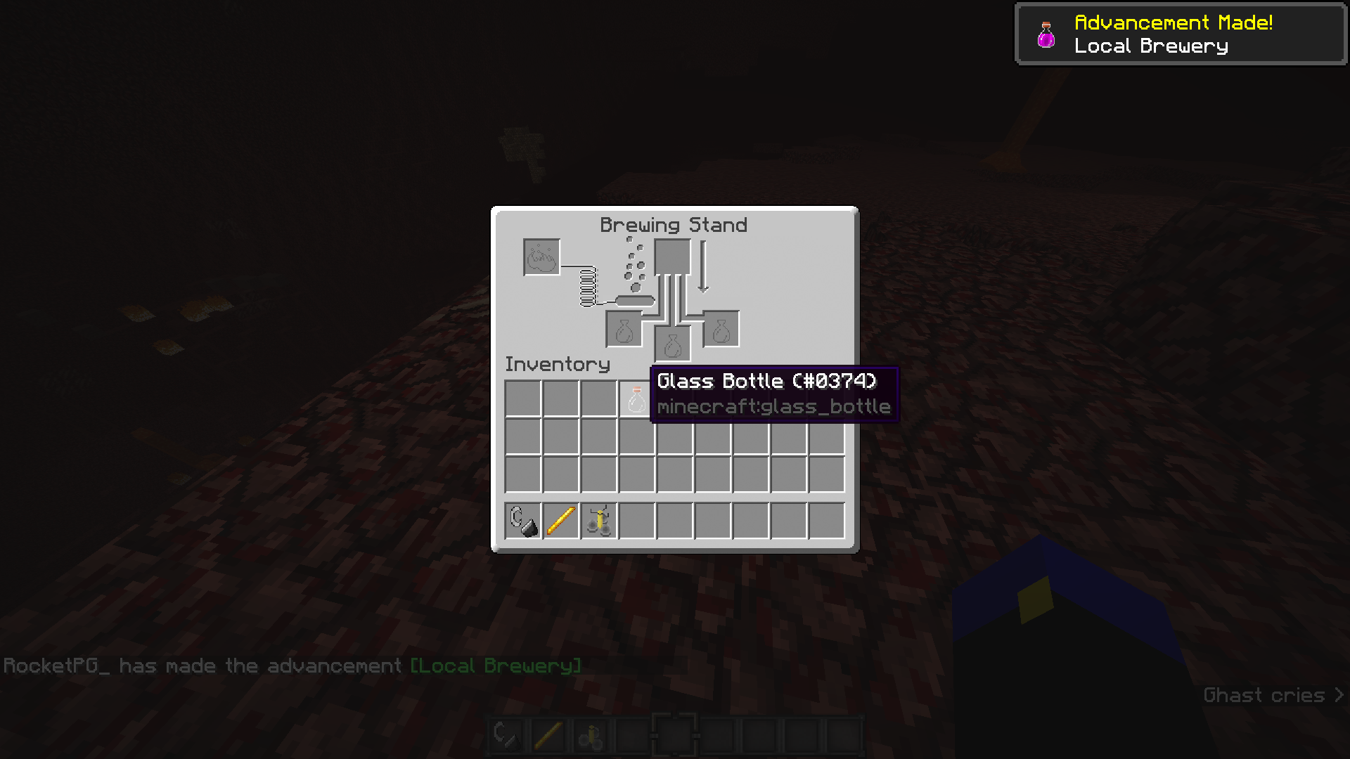 Taking out any item besides a water bottle in a brewing stand will give you the "Local Brewery" achievement.