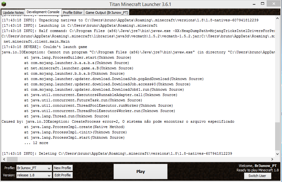 i can't play, all the time, when i put [start] the game crashes and allways saying [game output] i already try too delete %appdata% reinstal windows [8.1] but the error its the same. i hope get help quick. thanks