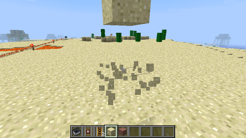 When two sand blocks are piled, and you remove the one underneath, the other block flashes and 'jumps' one block above before falling.