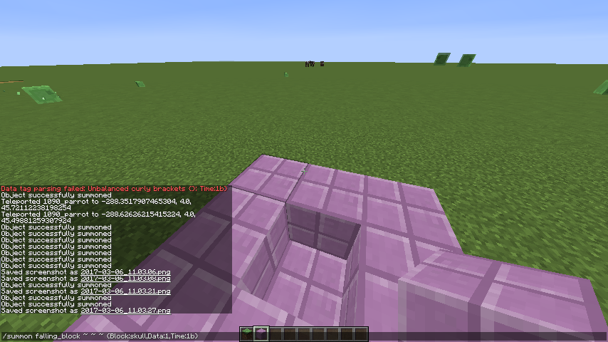 Summoning a falling skull in a skull with cause both skulls to disappear and will make a glitched out block that is invisible and will cause the player to get stuck in it.