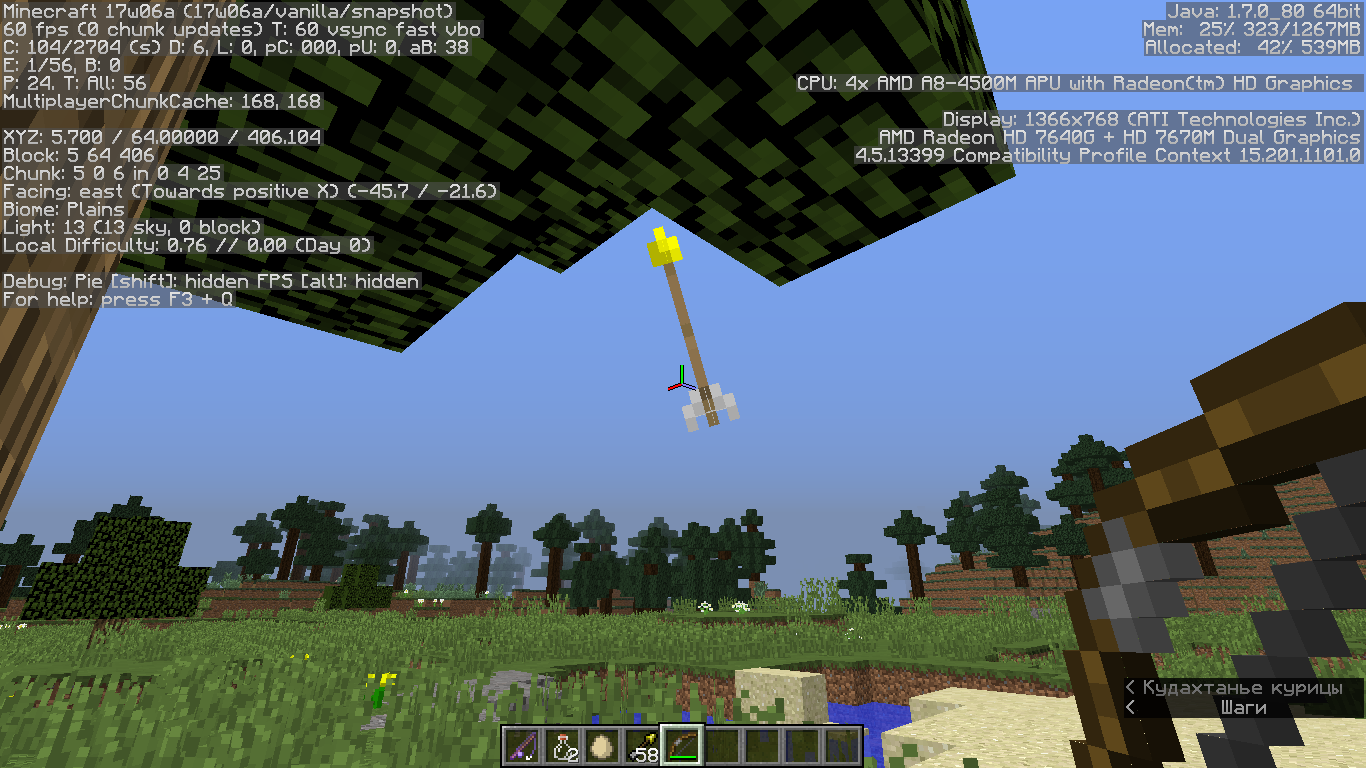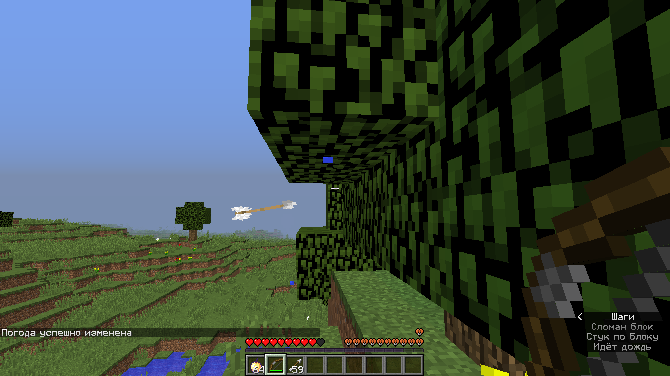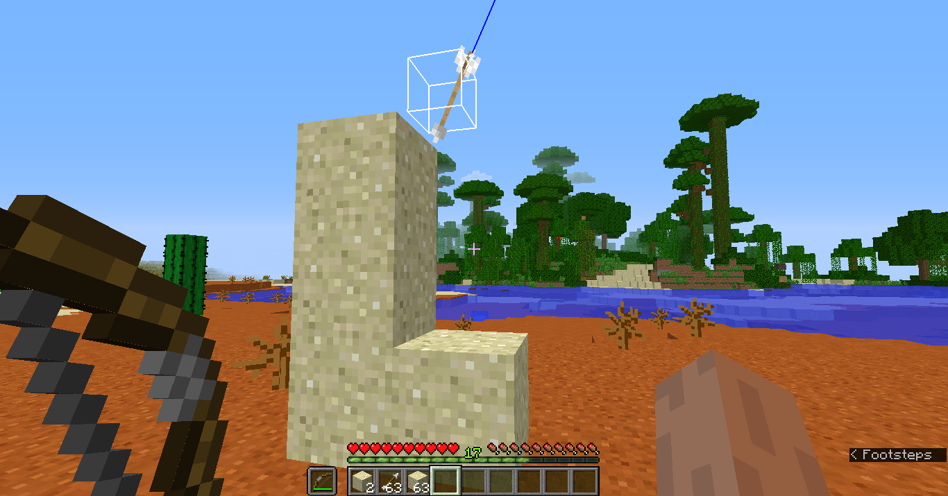 When the block into which you shot an arrow/a trident was destroyed, the arrow/trident does not fall if its hitbox touches another solid block
