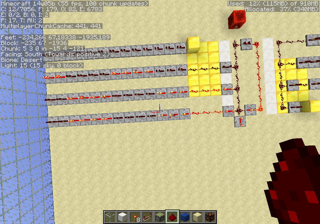 Came up with this clock oscilliscope setup while testing this report. Everything described below is valid as of 1.5.2pre. Fun facts: