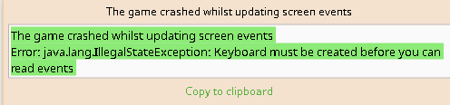 Error: java.lang.IllegalStateException: Keyboard must be created before you can read events"