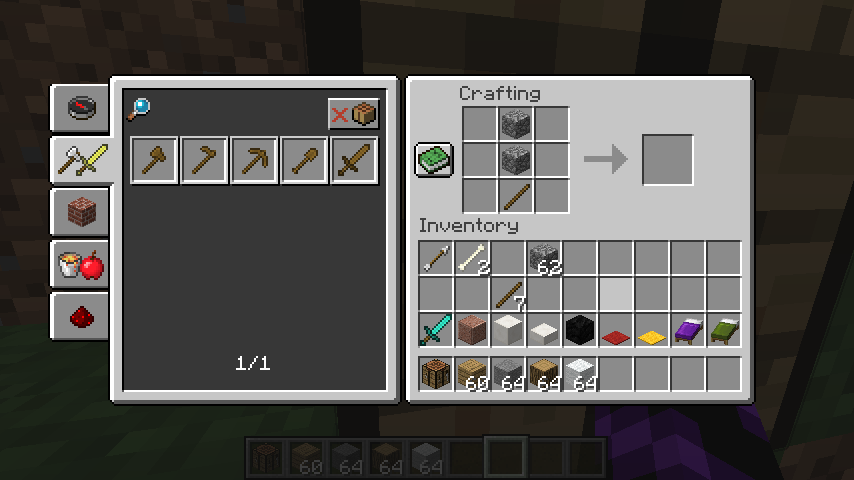 When I have planks and stone in my (creative) inventory (amongst other things), no tools are available to craft (due to no sticks). When I craft sticks, only the wooden tool recipes pop up. Even when I manually craft a stone sword, nothing appears in the box to take.
